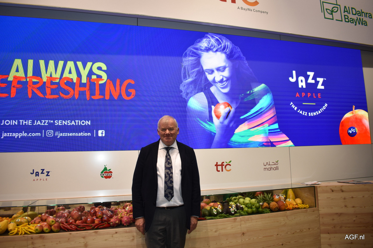 Tony Fisette poseert voor de laatste keer op zijn stand tijdens de Fruit Logistica. In maart zal hij met pensioen gaan.