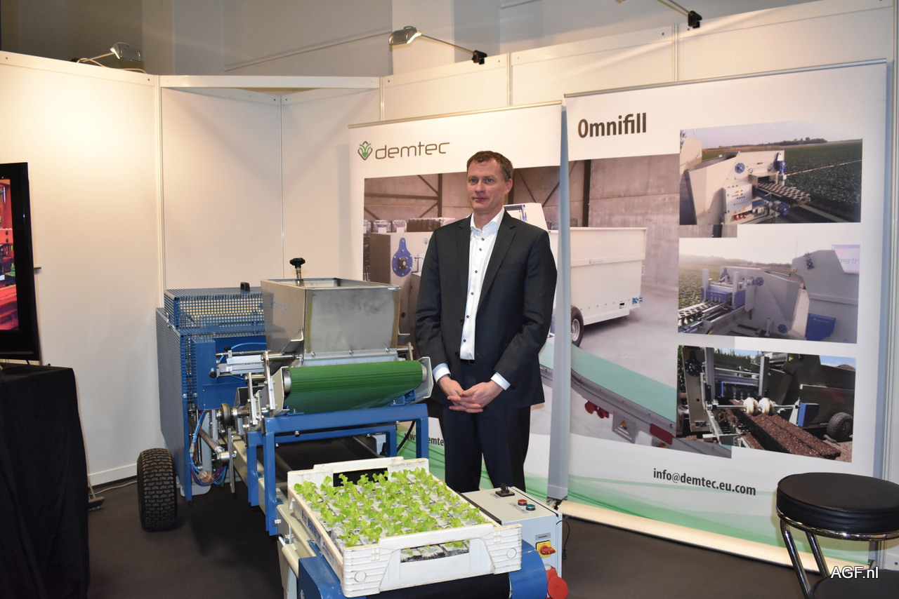 Stefaan Vandaele van Demtec voor de pottenpersmachine geschikt voor kleine bedrijven.