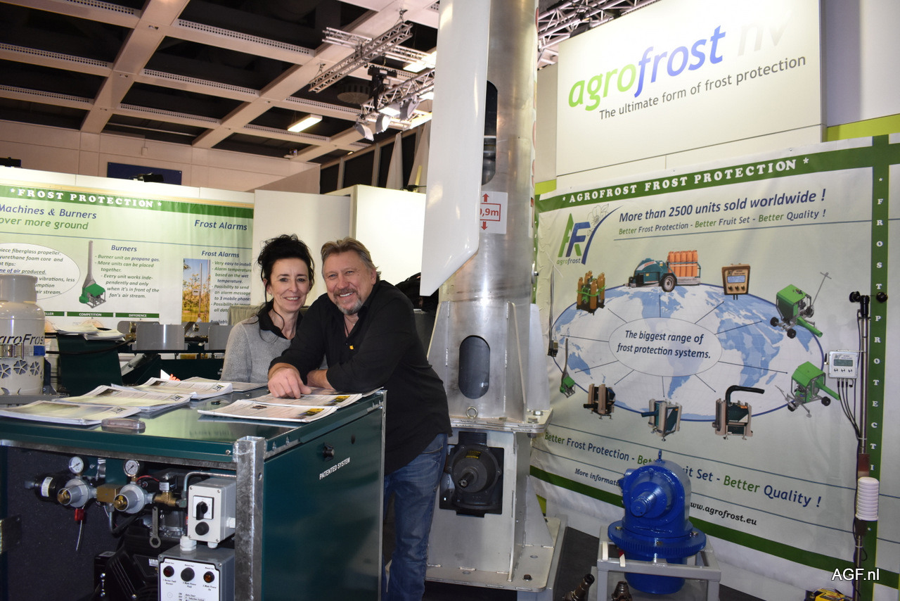 Marc Polleunis en Nadya Brughmans van Agrofrost. Het bedrijf heeft een nieuw nachtvorst alarm.