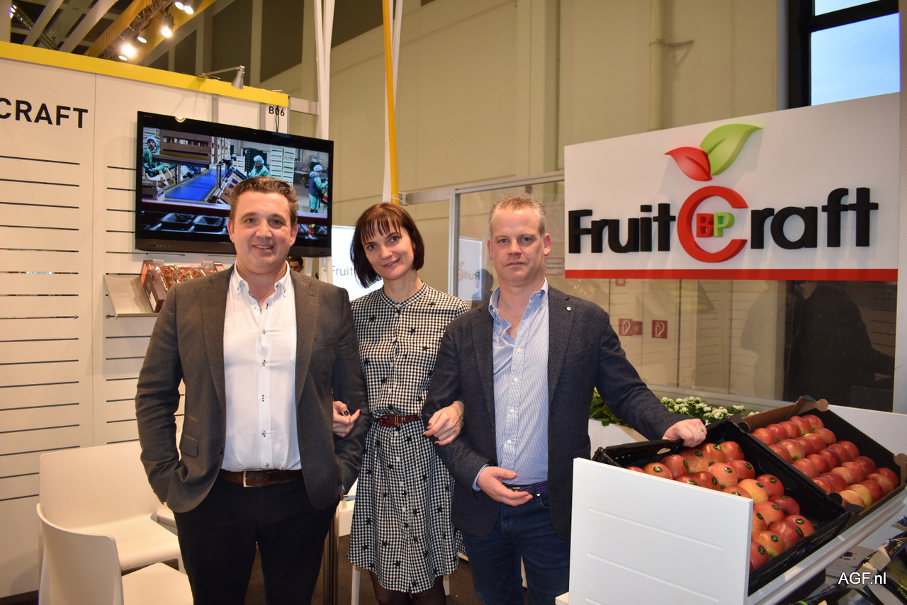 Wendy Bangels, Tim Pittevils, Natalia Perevertaylo van BP FruitCraft. Het bedrijf bestaat sinds augustus vorig jaar en exporteert appelen, peren en aardbeien naar iedereen die passie heeft voor fruit.