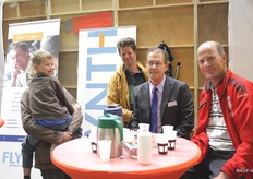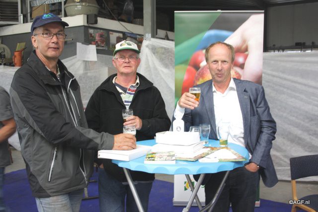 Fruittelers Johan Kuin en Jos Zegers met Kees de Jongh van Agrifirm