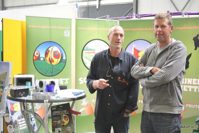 John Frijters van vogelverschrikker.nl met fruitteler Peter de Boer uit Westwoud