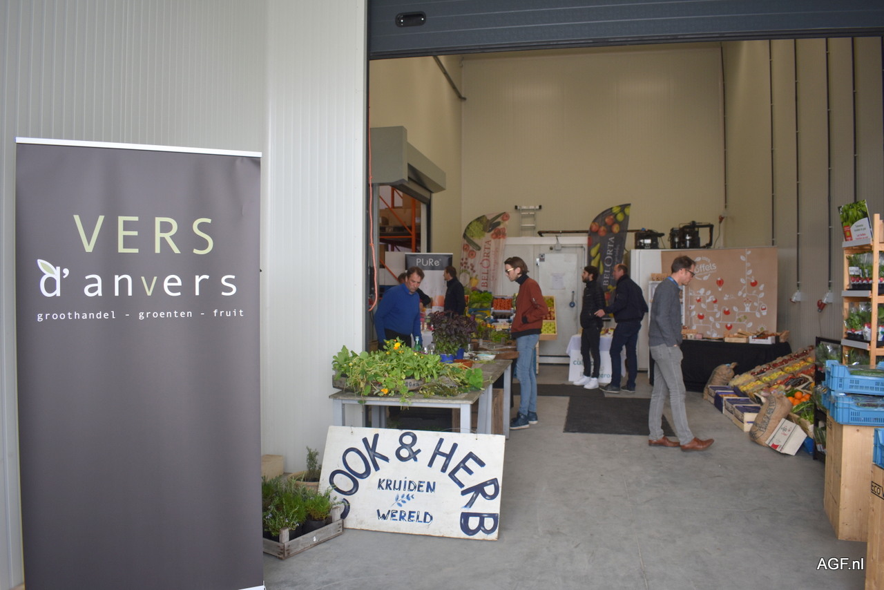 Jan en Lieve van slagerij Van Dorst bieden naar vlees ook wat groenten en fruit aan die ze bij Vers d'anvers halen.