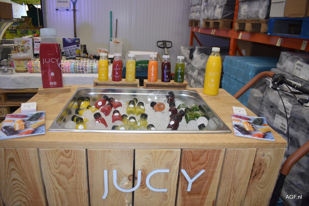 Yves De Vos van de Juicy Group liet de gasten maar al te graag zijn sappen van 100% groenten en/of fruit proeven.