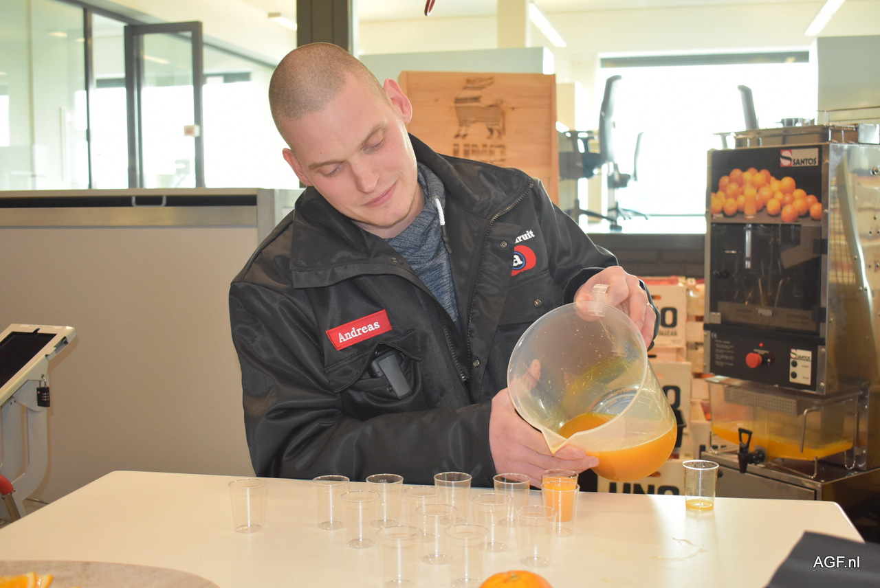 Andreas van de Velde schenkt de bezoekers een verse jus in