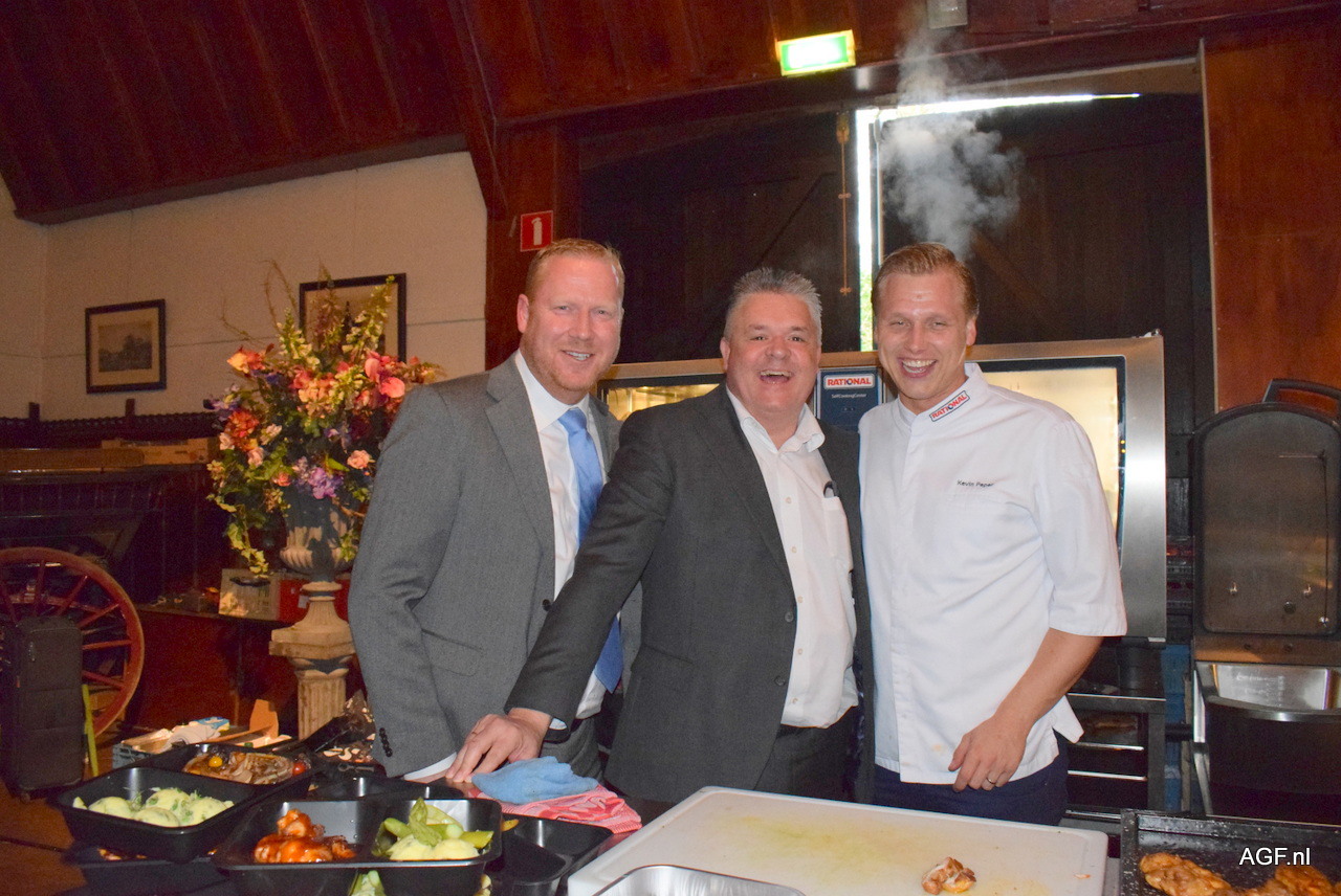 Peter Burks, Arnand Schinkelshoek en chef Kevin Peper van Rational zorgden met hun self cooking center voor maaltijdinspiratie. Het hoeft niet altijd een eenpansgerecht te zijn in de vitrine, deze is gemakkelijk te vullen met 3-vaks maaltijden