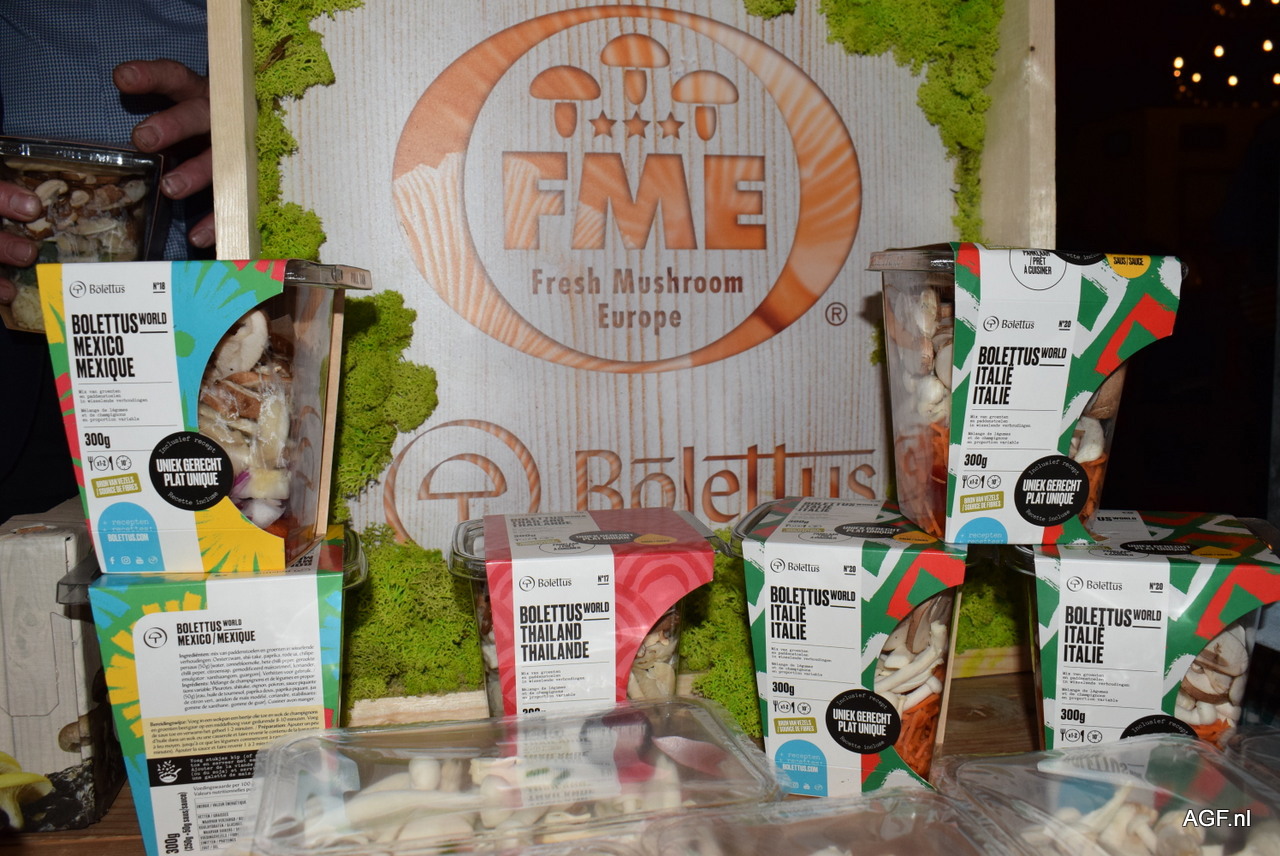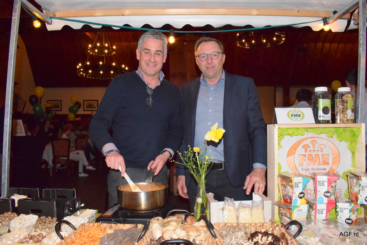 Luc van den Aker en Arie Verburg van FME hebben inspelend op de vegatrend een heerlijk sateetje champignon in de aanbieding