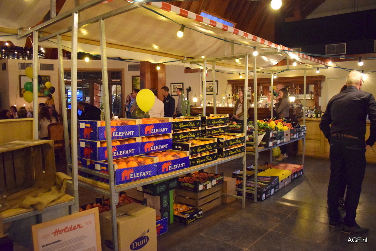 Op de marktkraam van Willem Dijk AGF staan natuurlijk Elefant sinaasappelen en Filosofo mandarijnen