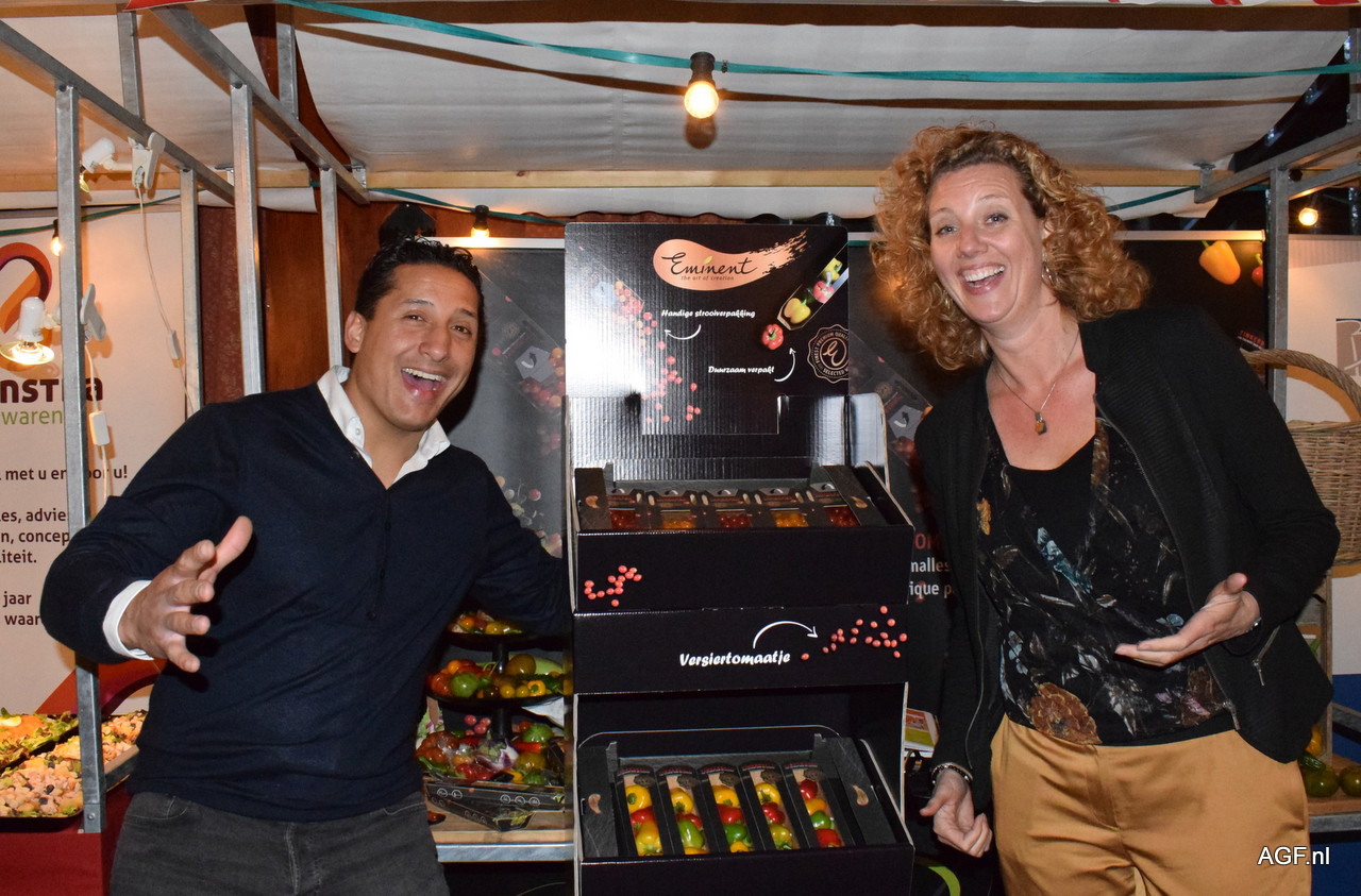 Manuel van Doesburg en Ingeborg Hendriks van Eminent zijn trots op hun vloerdisplay waarmee ze later in de tombola een van de AGF-specialisten blij maakten