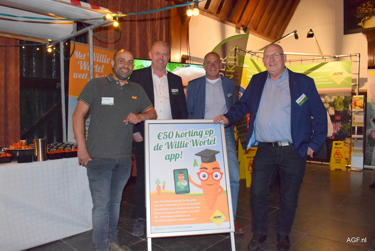 Enzo Cassaro, Erik Postuma, Bertus Korver en Frans Bolder van Postuma AGF hadden Willy Wortel meegenomen die alles weet over groente en fruit