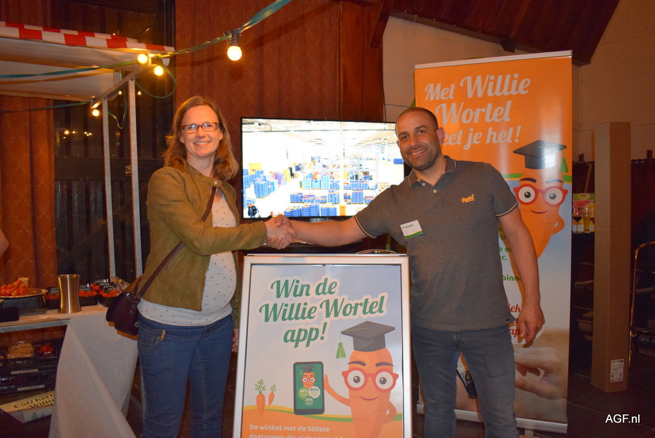 Linda Versluis van Landwinkel Versluis uit Emmeloord was de 500ste deelnemer aan Willy Wortel die alle voedingswaarden van groenten en fruit uit zijn hoofd kent en precies weet wanneer nieuwe seizoens-producten weer leverbaar zijn. Linda kreeg een gratis abonnement aangeboden van Postuma AGF