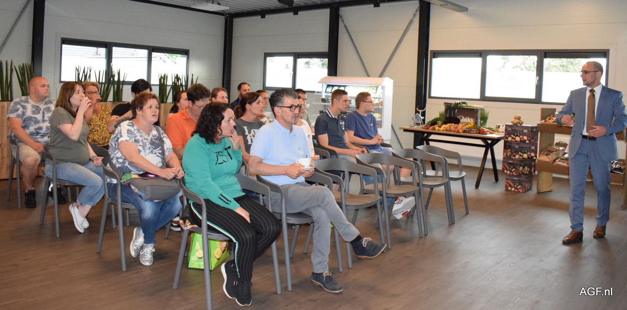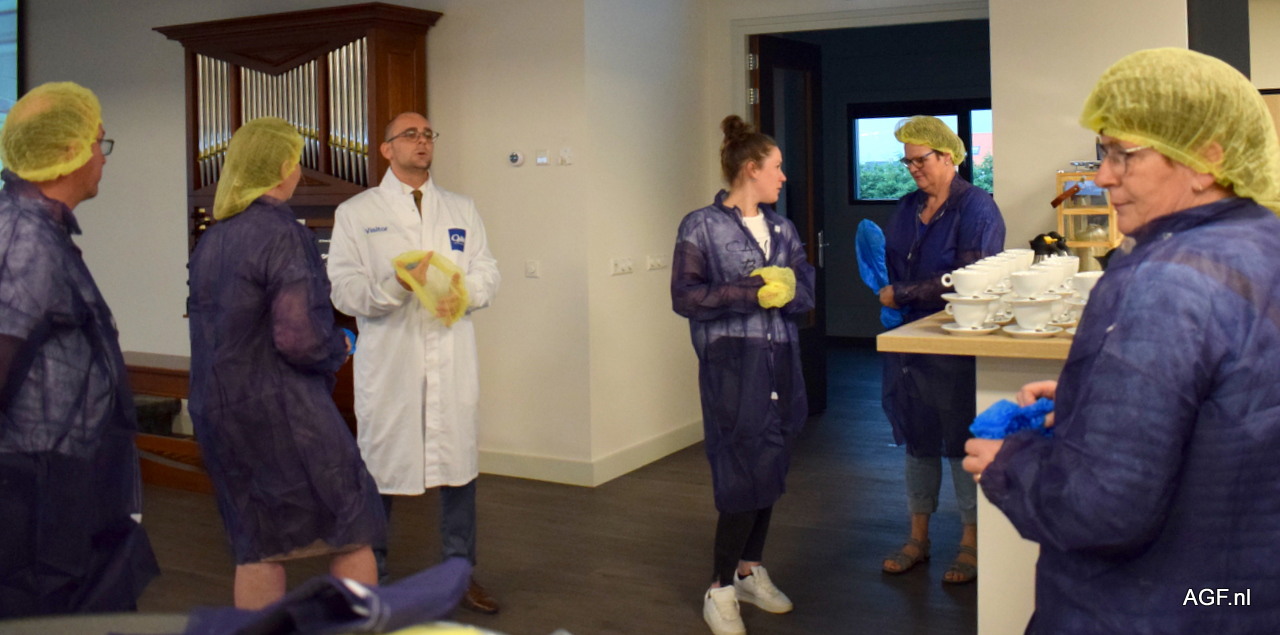 Wim Paans van Quiks nodigt de deelnemers uit voor de rondleiding waarbij de voedselveiligheidsnormen natuurlijk in acht genomen moeten worden