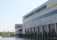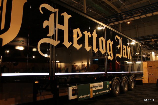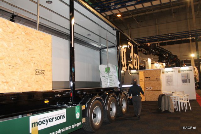 Buiten stonden verschillende trucks en opleggers opgesteld.