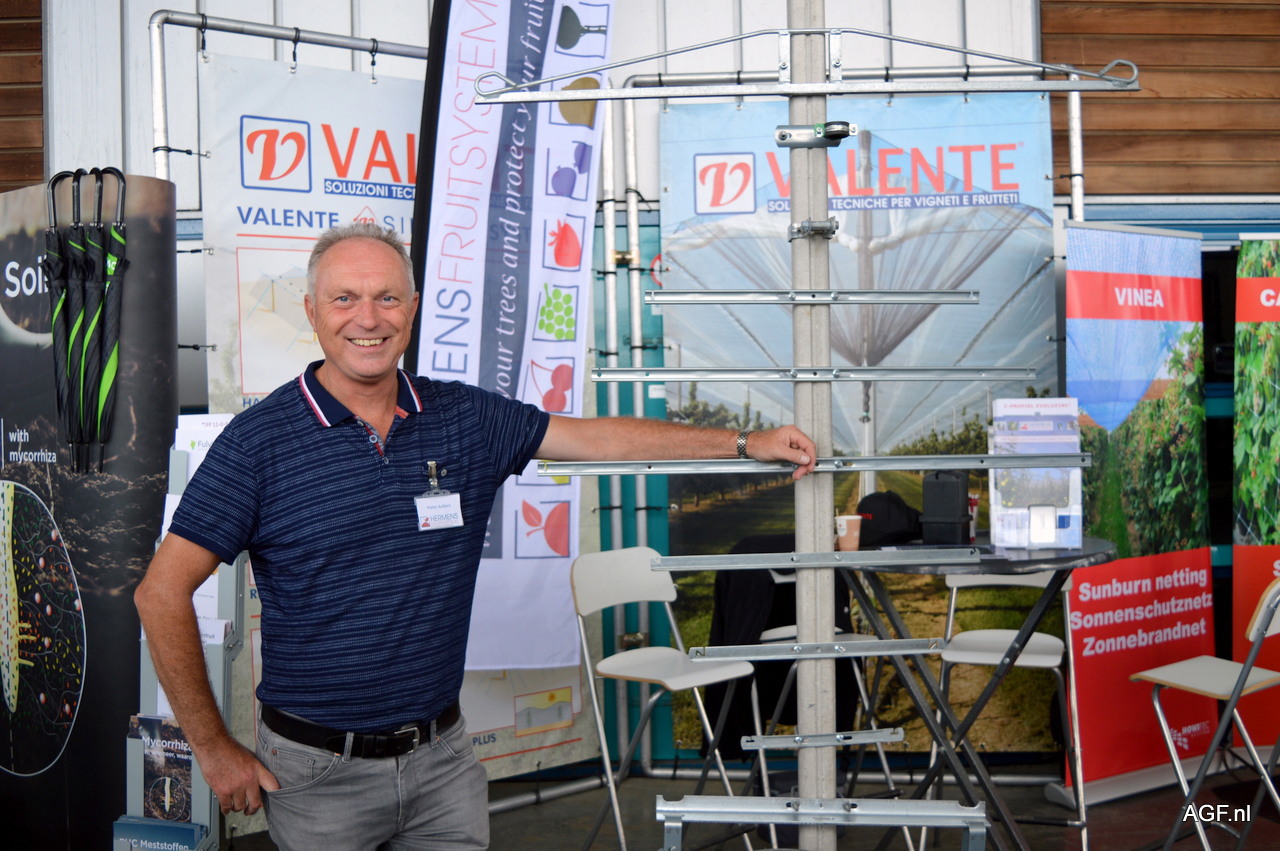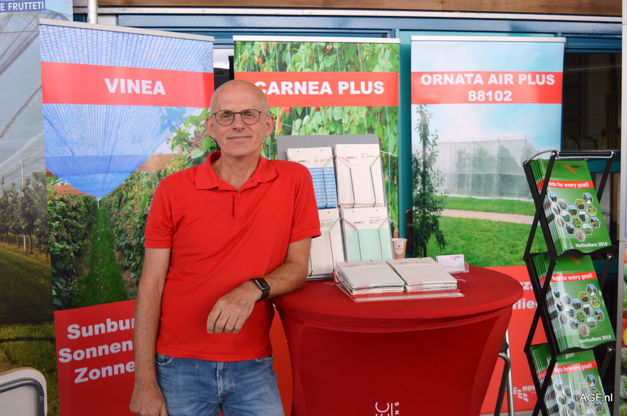 Anton Hulsegge van Howitec Netten. Nieuw in het assortiment is het Vinca net dat bescherming bied tegen zonnebrand aan kleinfruit
