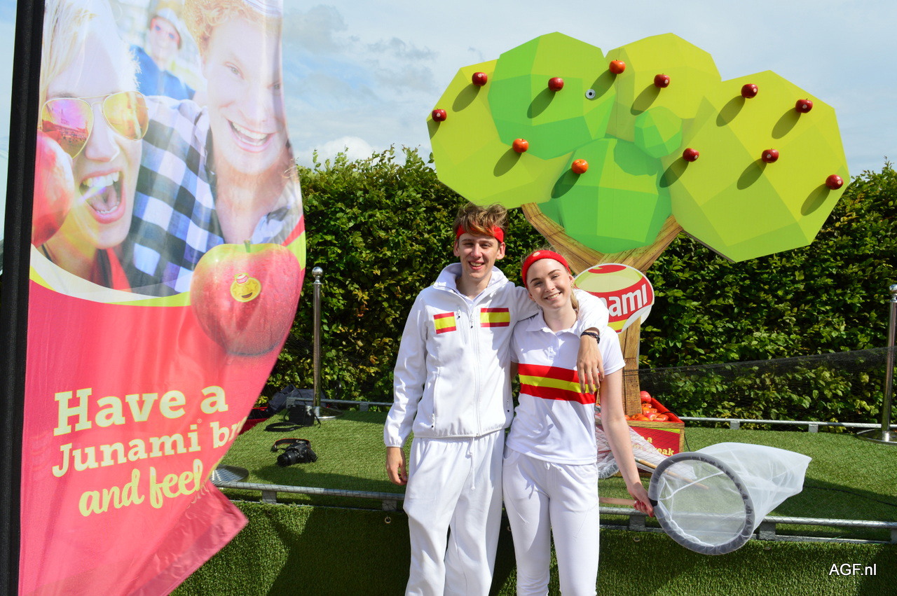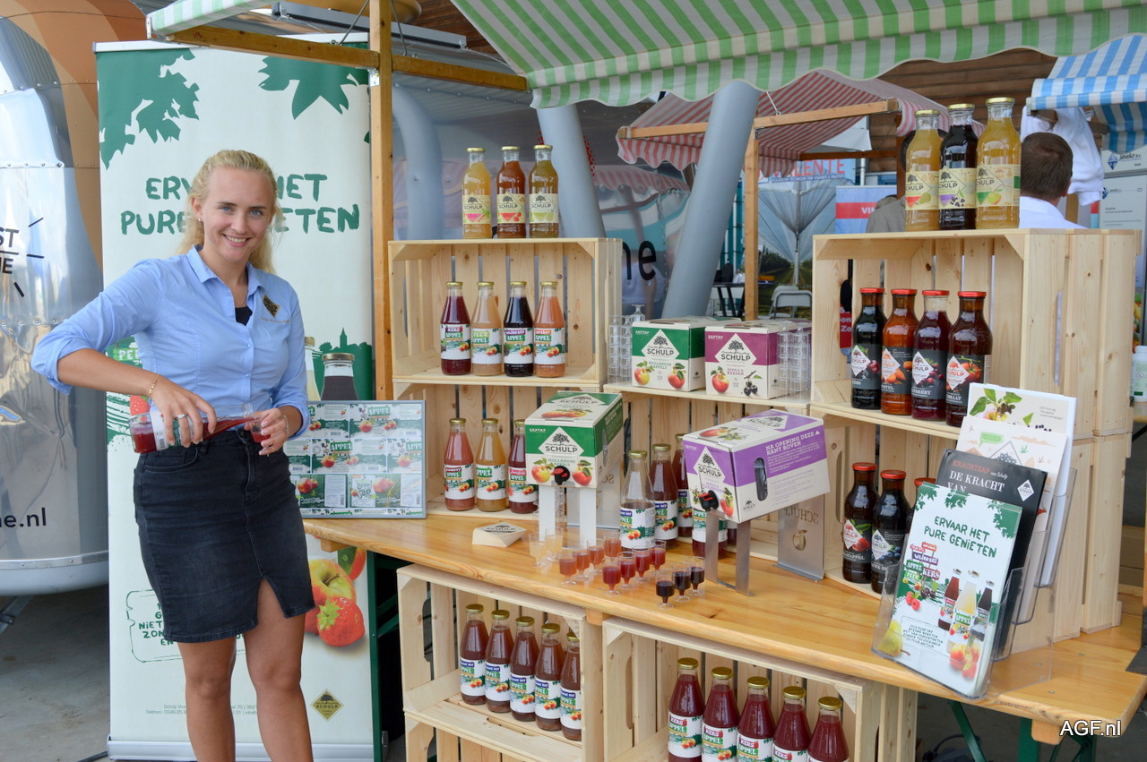 Elena Schulp, de nieuwe generatie van Schulp Vruchtensappen, schenkt sapjes voor de bezoekers