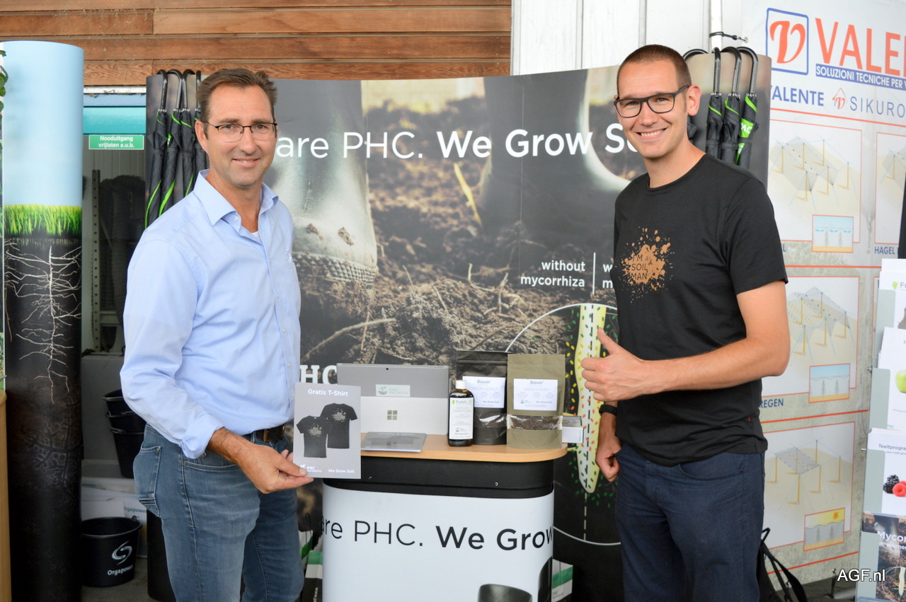 Raymond Notemans en Gerard Pelders van Plant Health Cure. Om de "soil" te promoten kon je je aanmelden voor een gratis T-Shirt