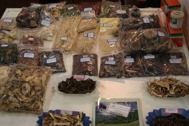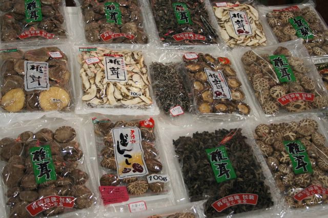 Chinezen showen gedroogde paddestoelen.