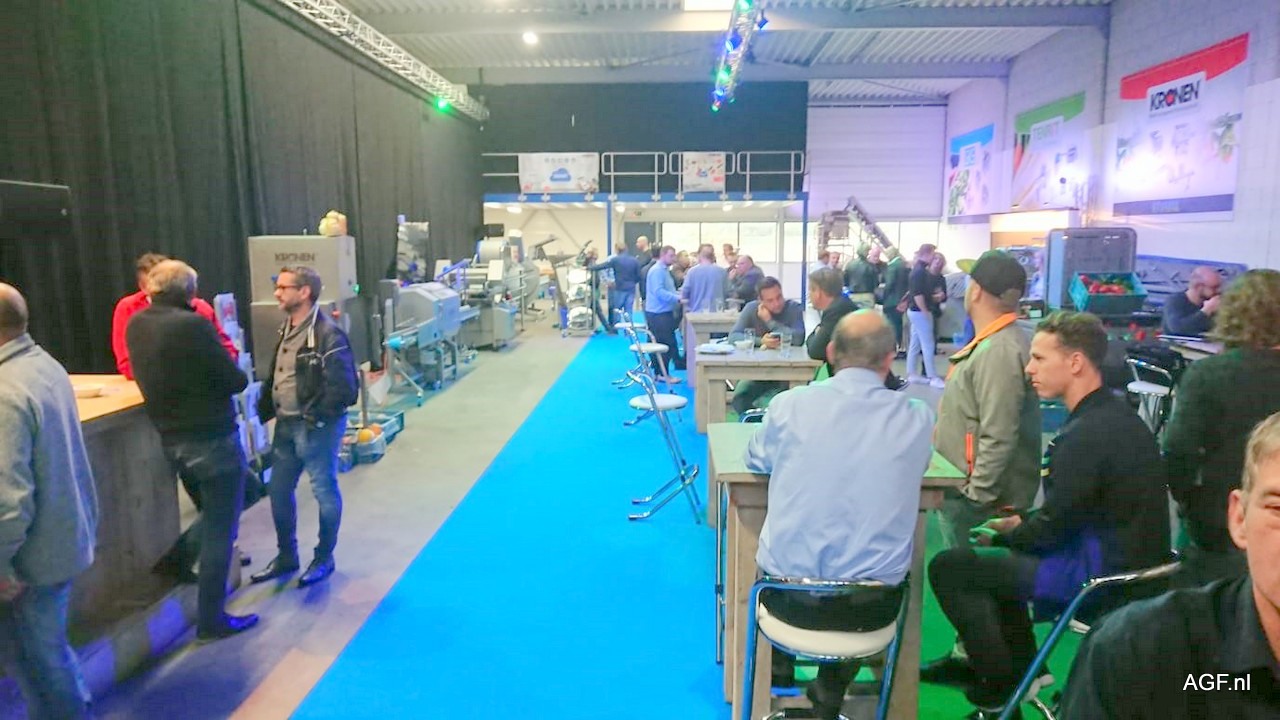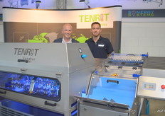 Lars Heuvelmans en Andreas Derksen van Tenrit Foodtec. Links op de foto een schilmachine voor producten zoals wortelen, asperges en komkommers. Andere machines van Tenrit kunnen ontkoppen, ontstaarten en snijden.