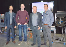 Het Kronen team met een klant. Stefan Kobel, Mark Reyven van Vita Cress Real, Stephan Zillgith en Andreas Ell. Zij poseren voor een bandsnijmachine van Kronen (GS 10-2) met Smart facelift. Alle instellingen zijn zichtbaar PC, mobiel etc. Problemen kunnen op afstand worden gediagnosticeerd of opgelost. Kronen kan desgewenst middels een door de klant afgegeven code meekijken in de machine.