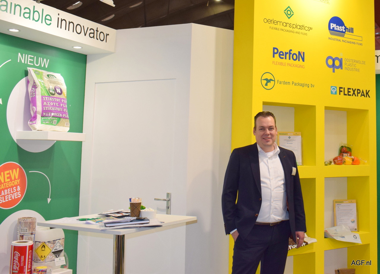Tibor Tholen van Oerlemans Plastics. Met verschillende nieuwe duurzame oplossingen, was Oerlemans ook voor de AGF-sector vertegenwoordigd.