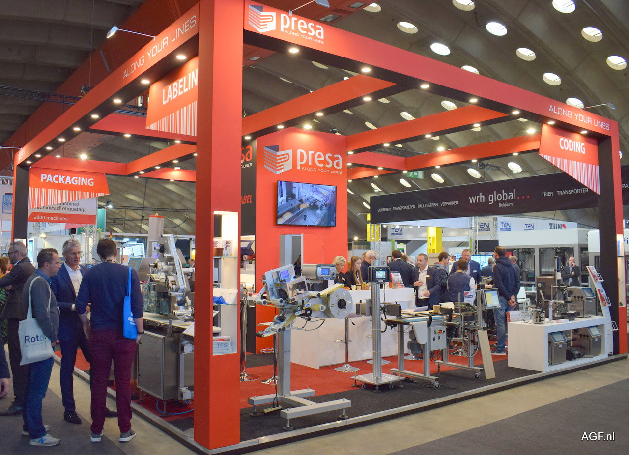 Presa had een prominente stand. De stand was ingedeeld met verschillende machines, voor verschillende sectoren. Ook voor de AGF-sector waren er totaal oplossingen aanwezig.