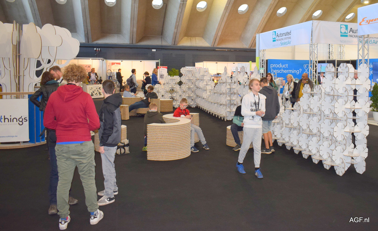 Een gedeelte van de beurs was ingedeeld als relax ruimte, bezoekers hadden hier de ruimte om uit te rusten op kartonnen meubels.