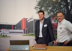 Johan Tack en Tijl de Kuyper van Cyklop. Tijl staat naast de Axro machine, een machine voor het bundelen van groenten en fruit.