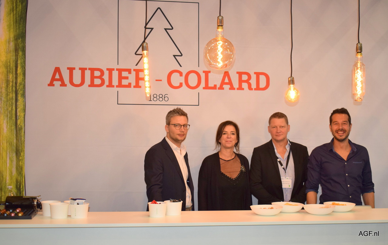 Het team van Aubier Colard: Thomas Curvers, Nathalie Kellens, Kristof Marinus en Dimitri Gielen. Hebben op de beurs hun innovatieve bio folie goed in de picture gezet.