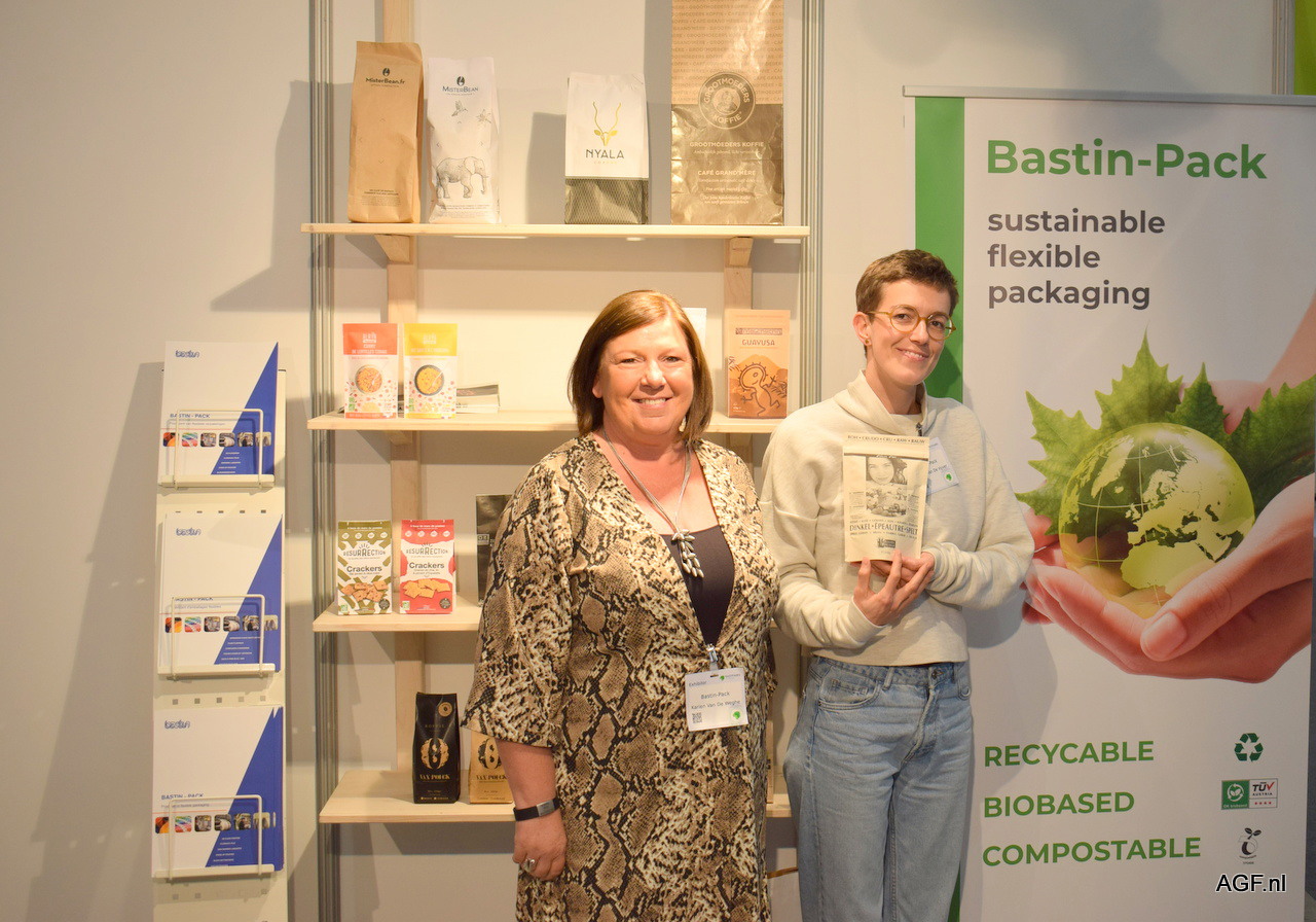 Karien Van de Weghe en Aurélie Van de Vyver van Bastin-pack. Karien verteld dat Bastin-pack voor sustainable, flexible packaging solutions staat.
