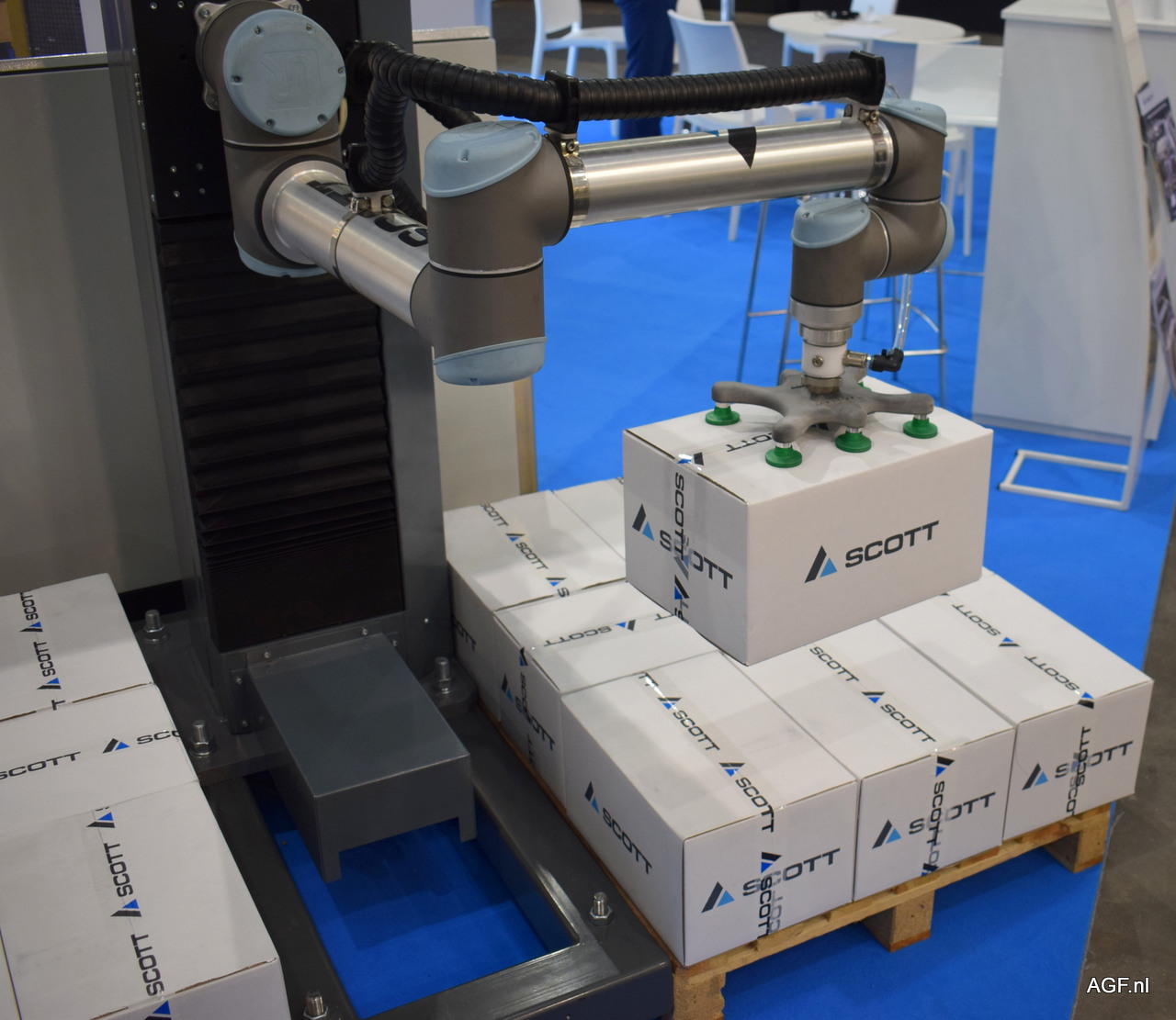 De collaborative palletiser van Scott automations.