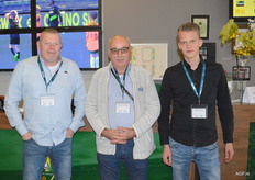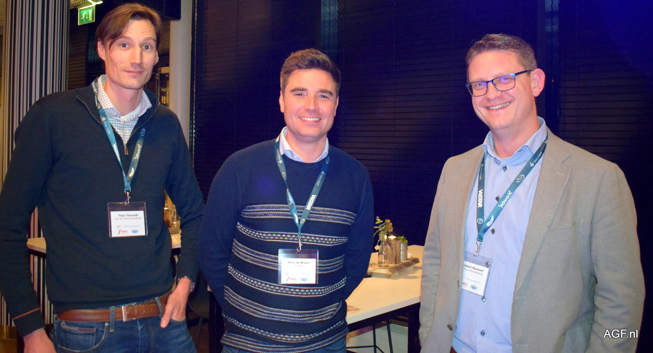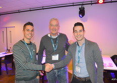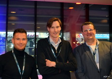 Joost van Dijk (Vegetables Market Place) en Frank Vellekoop met collega Pascal Kouwenhoven van EuroWest.