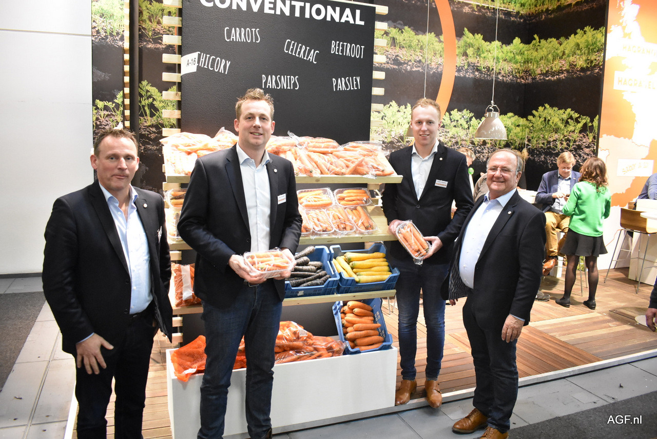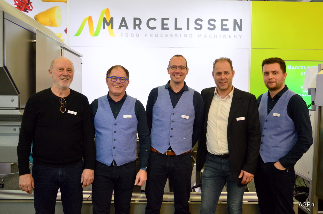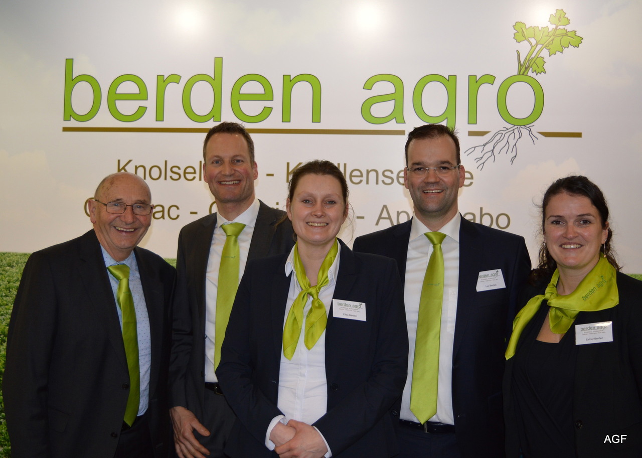 Er wordt gewerkt met 4 pijlers knolselderij: vers met blad, vers zonder blad, bewerkt; frites, burger, blokje en andere snits, expertise; knolselderij, rassen, teelt en bewaring. V.l.n.r.: Jo Joosten, William Joosten, Eliza Berden, Luc Berden en Esther Berden.