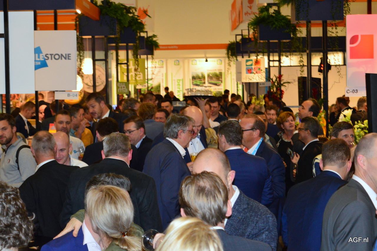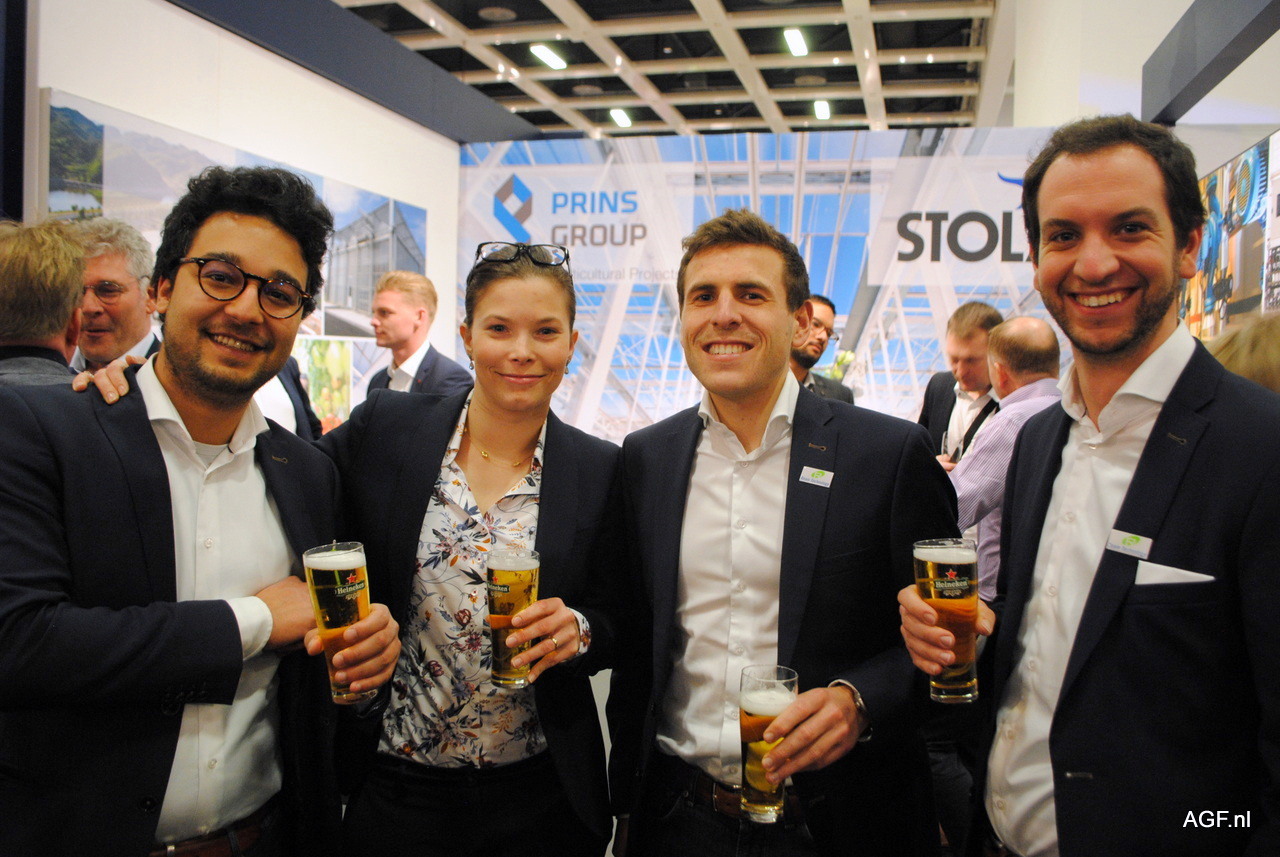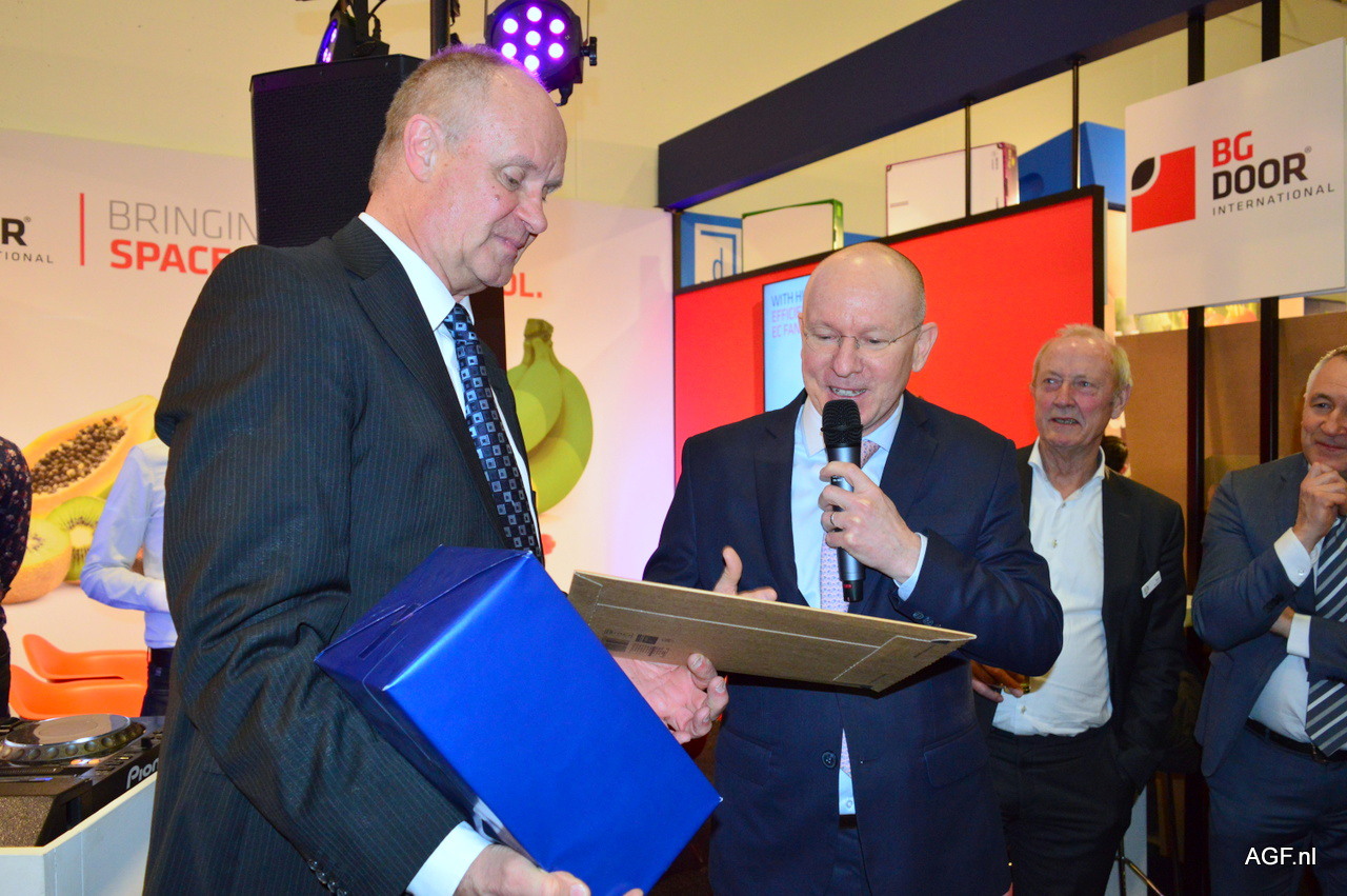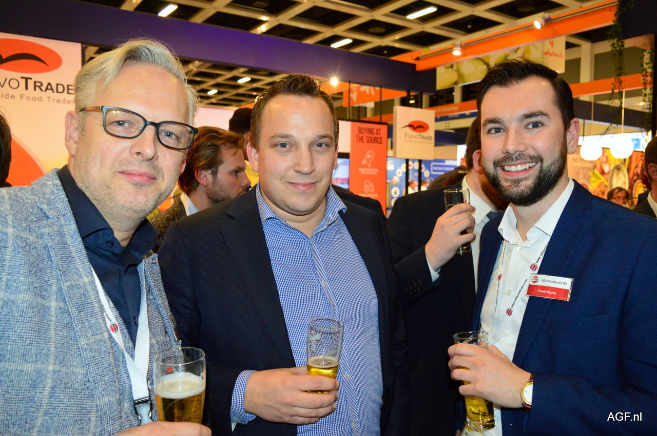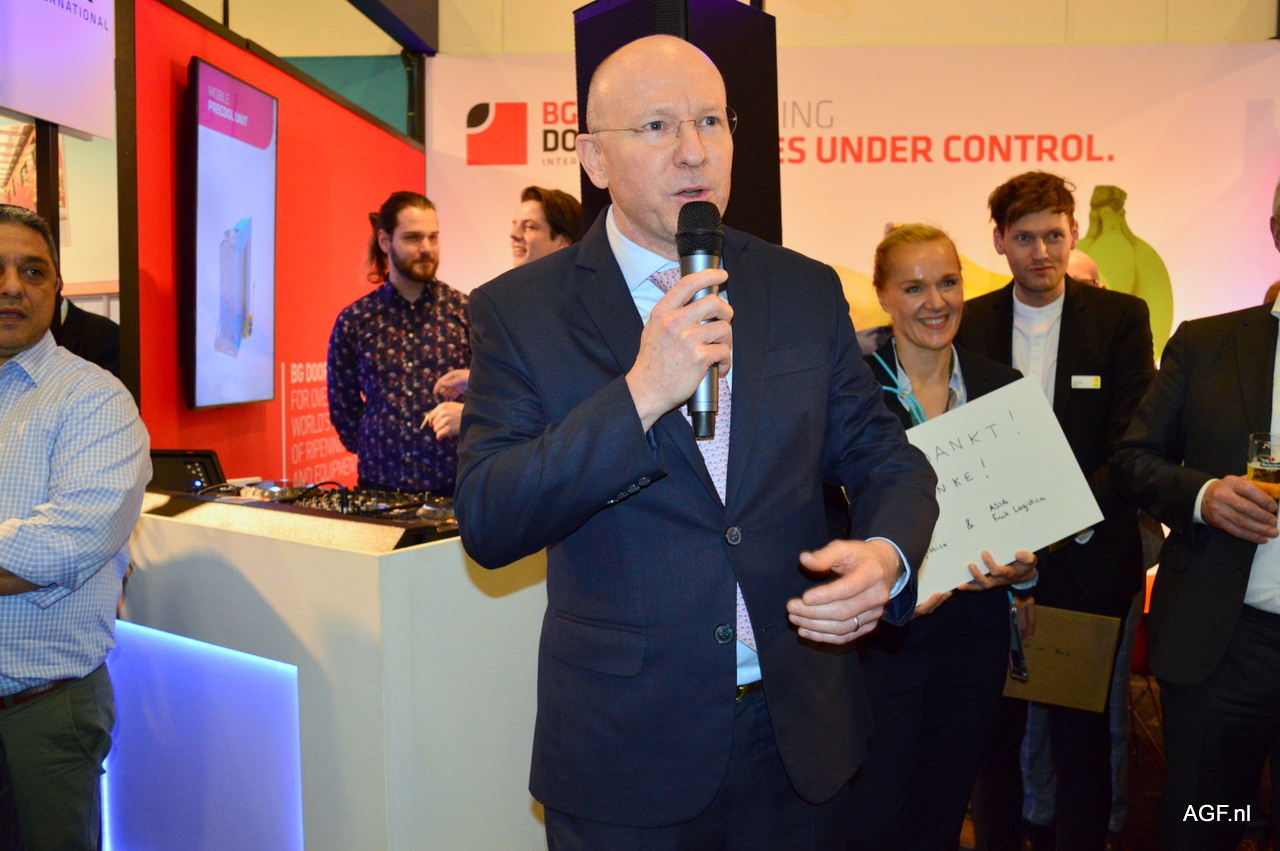 Vier bedrijven maakten van de gelegenheid gebruik Ger van Burik voor zijn laatste Fruit Logistica in het zonnetje te zetten door middel van een Dutch Borrel: Milestone Fresh, FlevoTrade Dronten, BG Door en AGF.nl