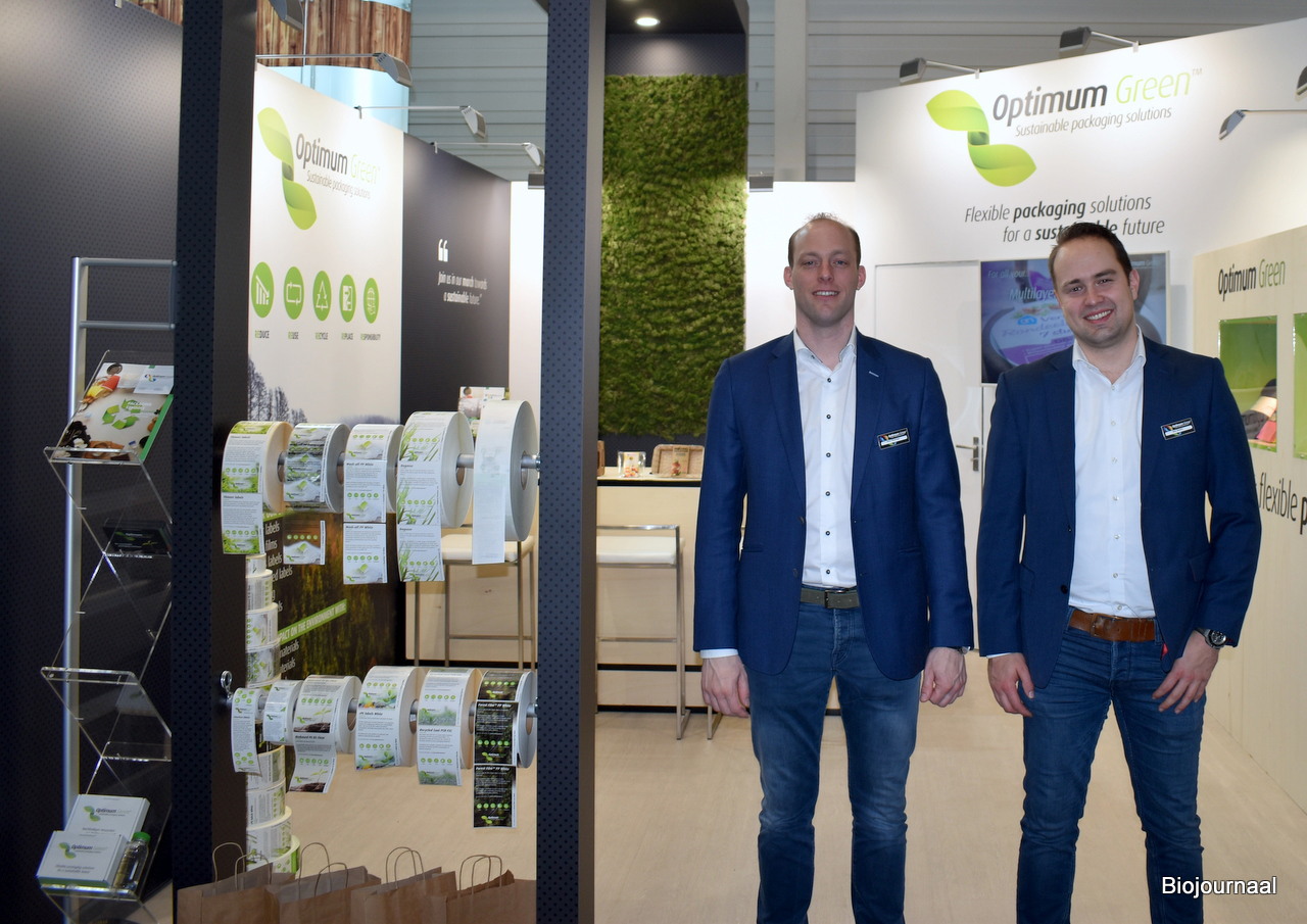 Alix Wijnings en Bob Bakker van Optimum Group. Optimum Group heeft haar Optimum Green portfolio gepresenteerd; een uitgebreid en divers portfolio aan duurzame labelmaterialen. De groep zal dit portfolio ook presenteren tijdens Empack in Utrecht.