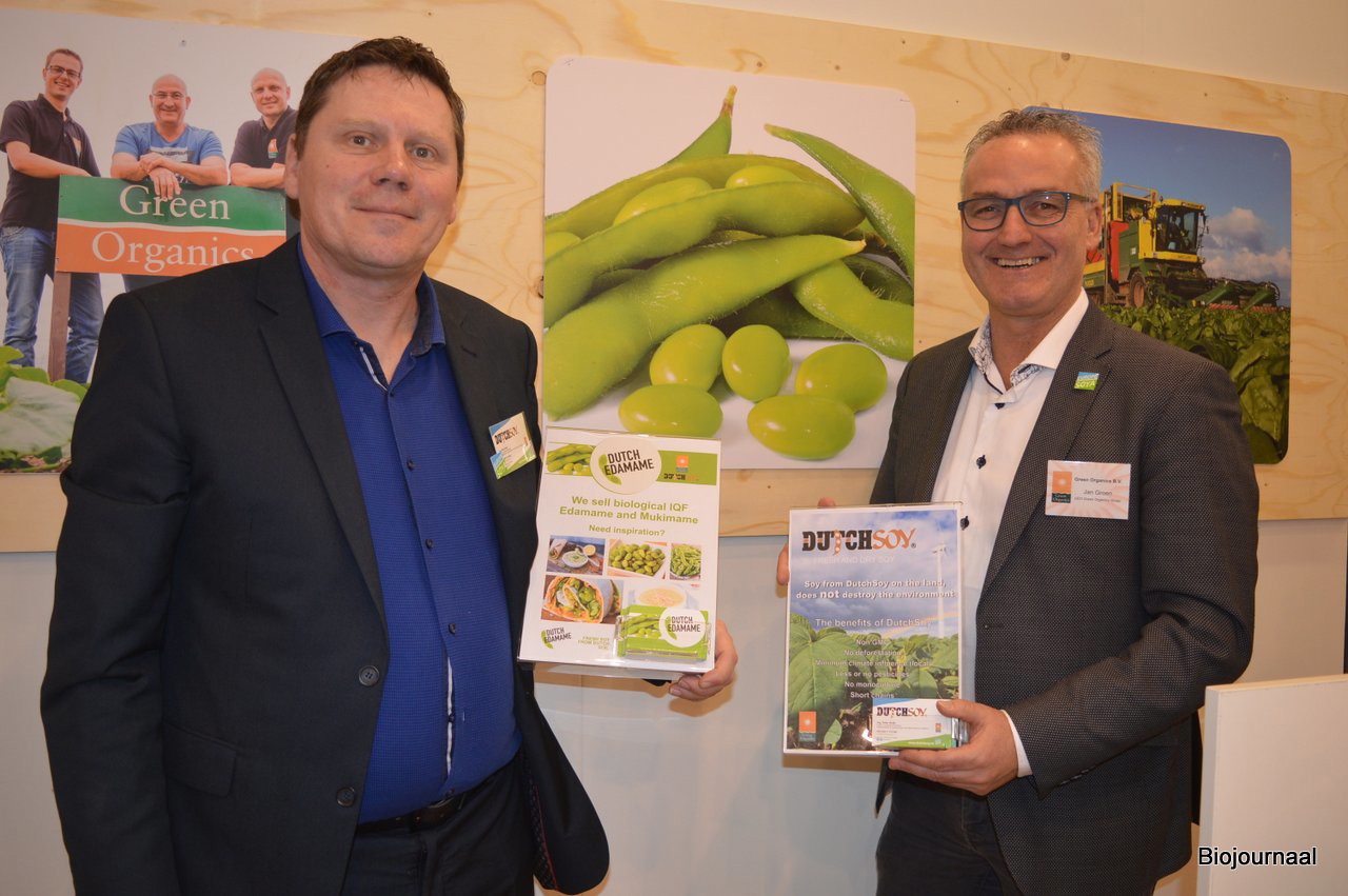 Peter Strijk (Dutch Soy) en Jan Groen (Green Organics) zijn zichtbaar troots op hun samenwerking rond de ontwikkeling en introductie van de sojaboon Dutch Edamame.