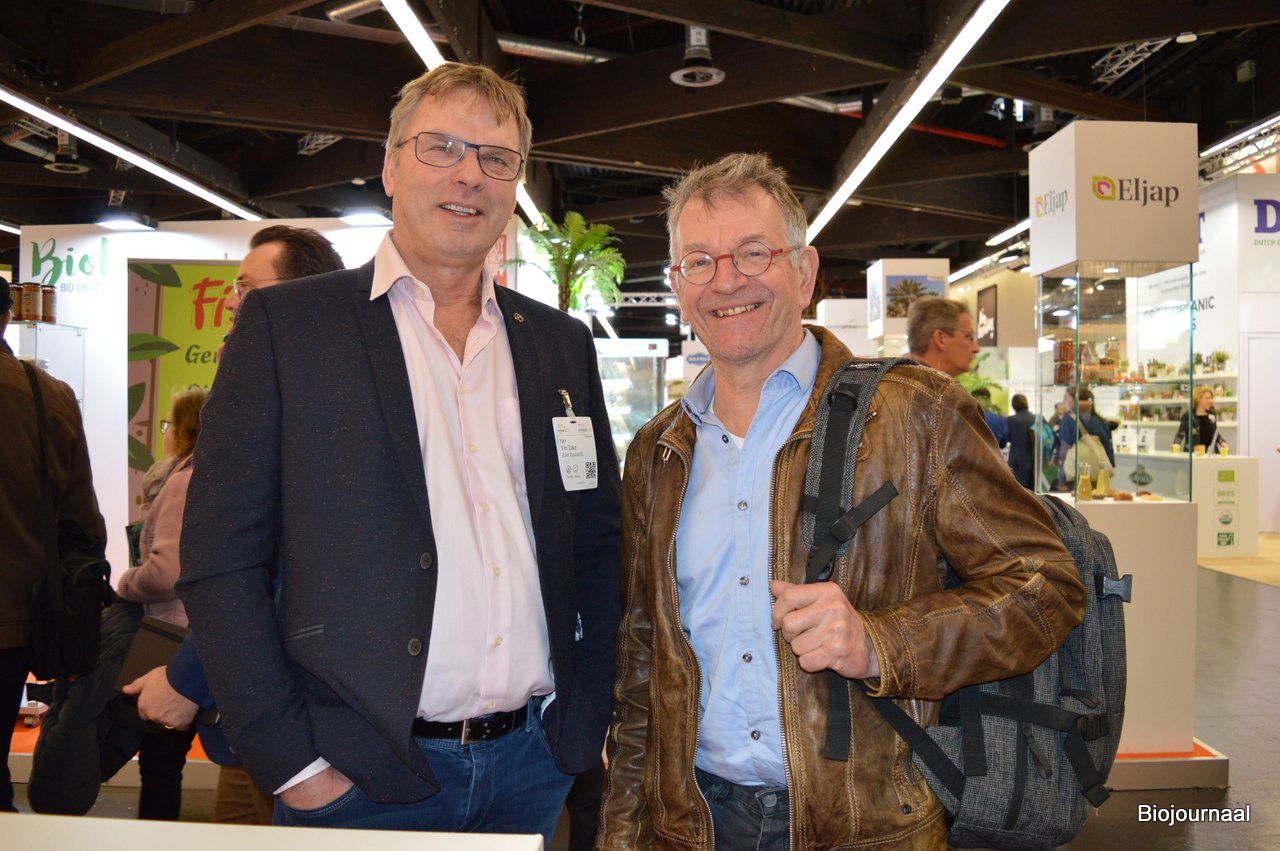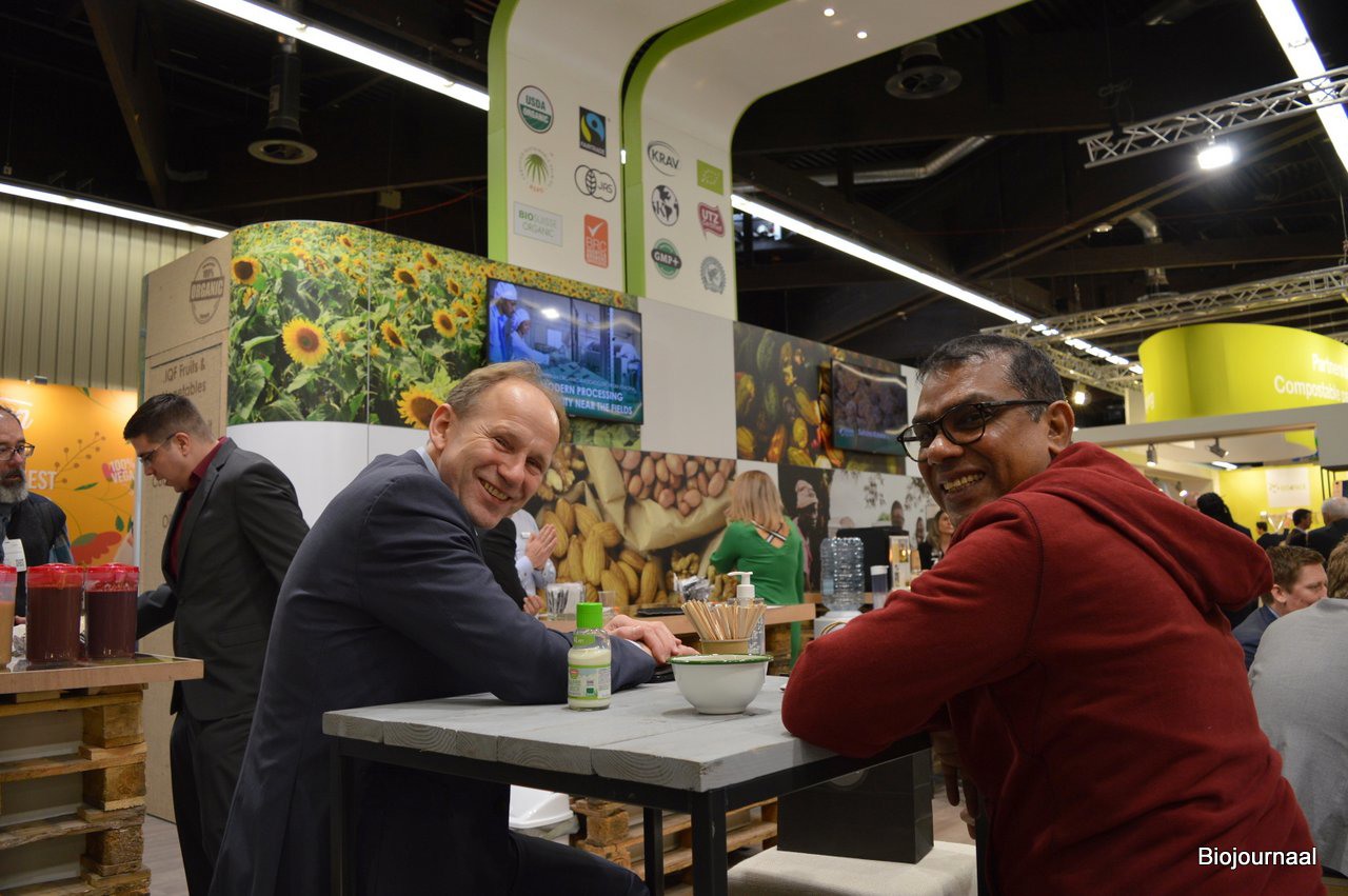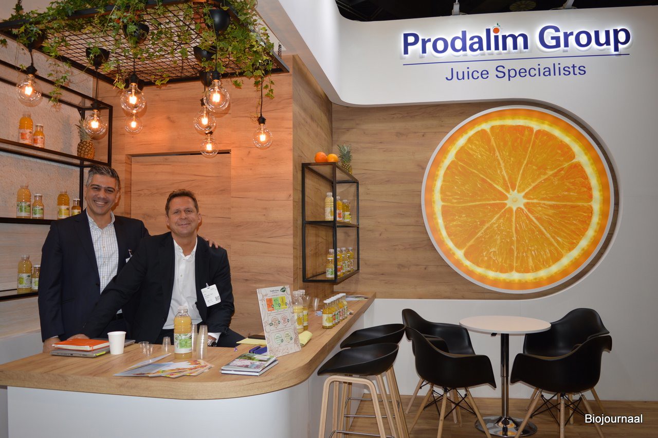 Assaf Jakubovicz en Alexander Thier in de stand van beursdebutant Prodalim Group. Dit in Rotterdam gevestigde bedrijf levert concentraten voor sappen. Ze zien een stijgende lijn in de vraag naar biologisch.