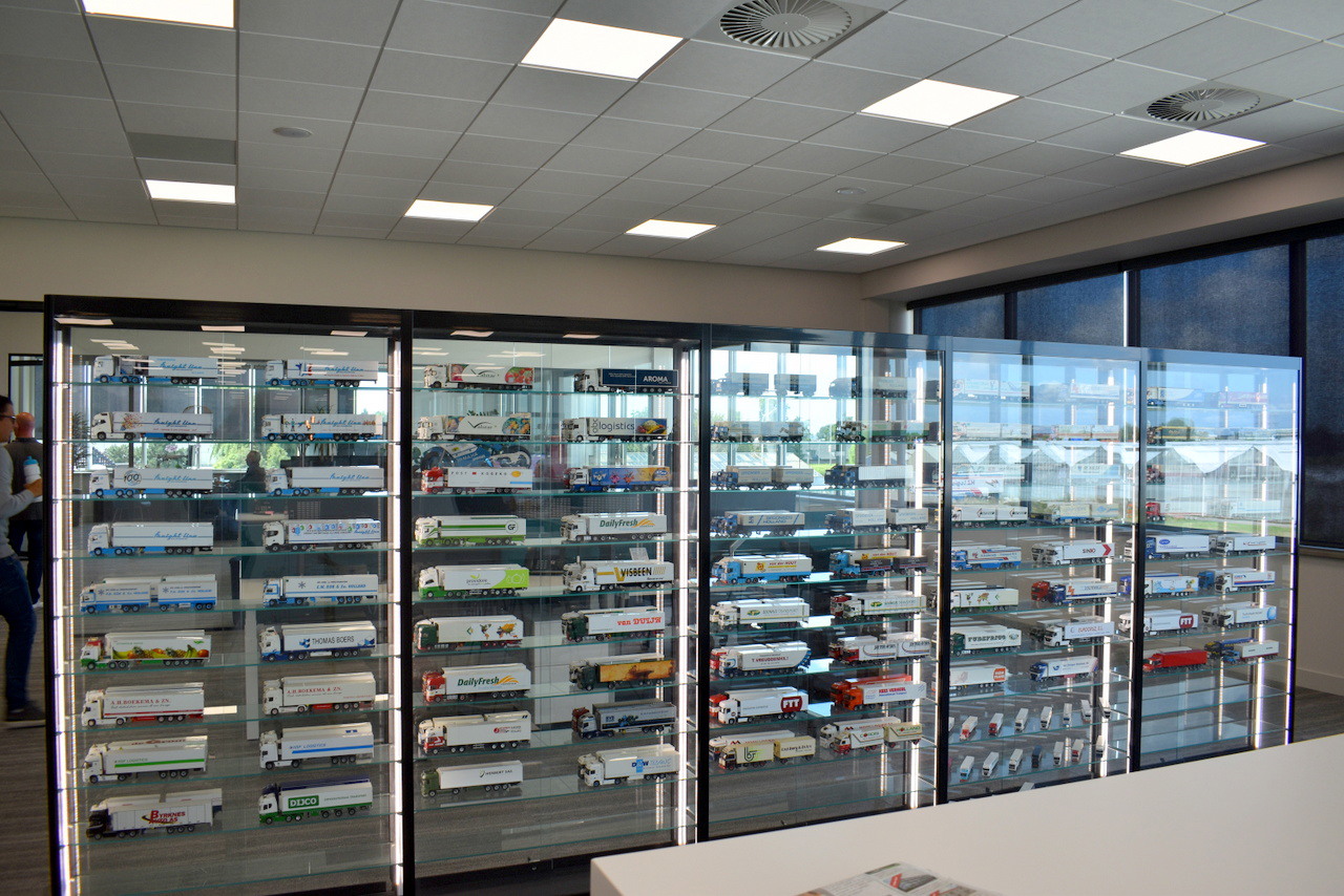 Een collectie aan eigen vrachtwagens in het klein kan natuurlijk niet ontbreken op kantoor