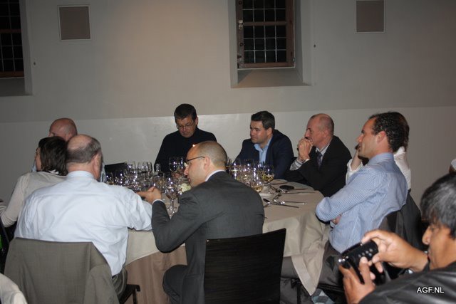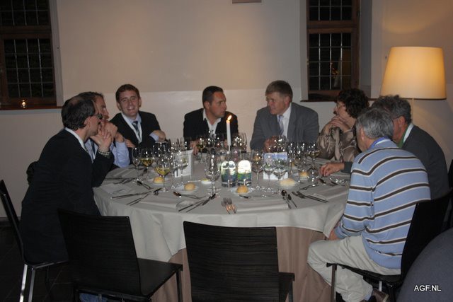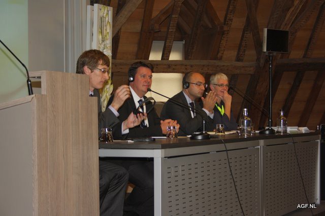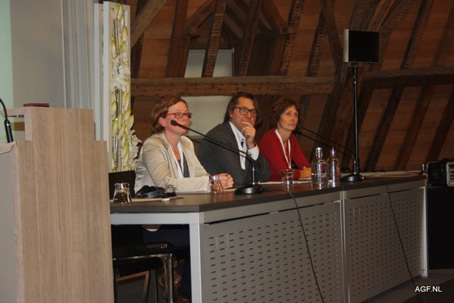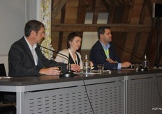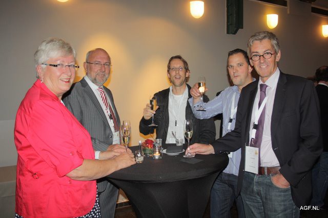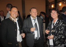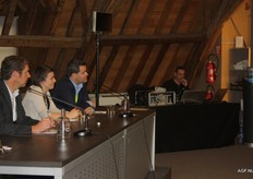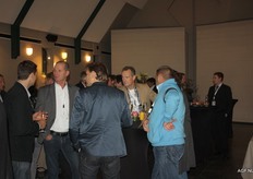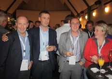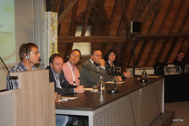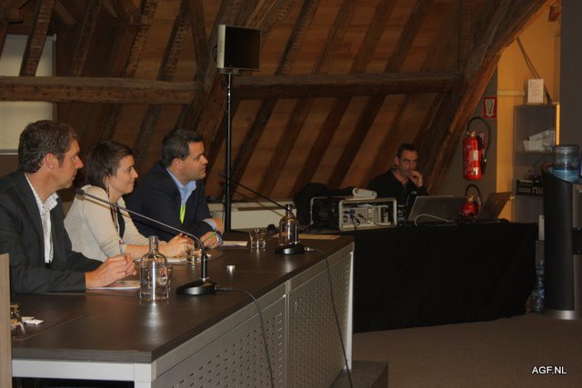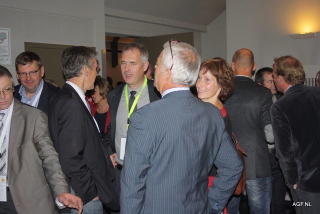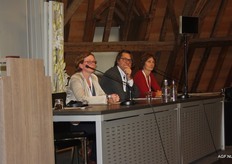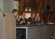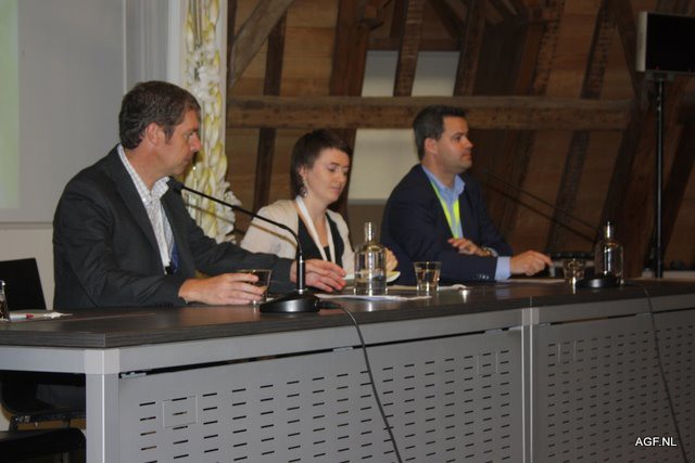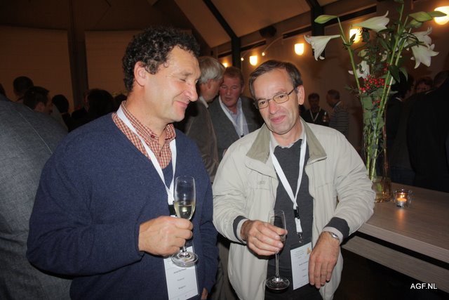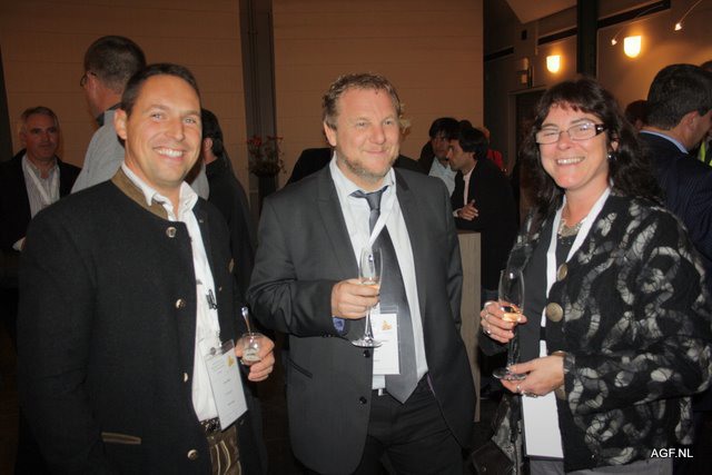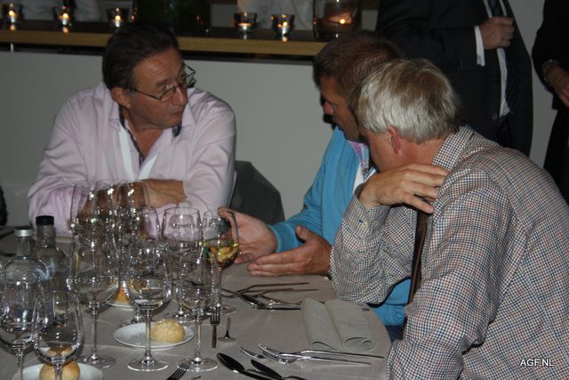 Roel Spruit (LTO) Rien Reijngoudt (Reijnpack) en Jan de Vries in een diepgaand gesprek