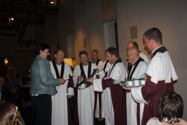 Rita Demaré neemt de prijs van Geert Dejonckheere in ontvangst