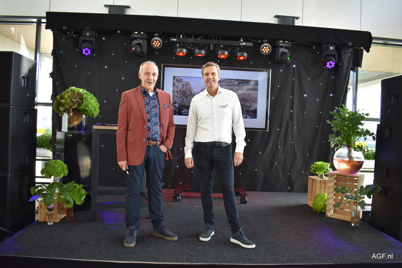 Van Gelder organiseert samen met telers en leveranciers in het Experience Center van dinsdag 26 t/m zaterdag 30 oktober 2021 de week van gezonde voeding, smaak en duurzaamheid. De broers Gerrit en Anton van Gelder op het podium.