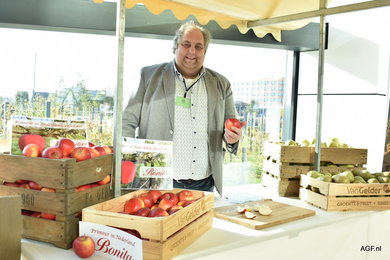 De Jong Fruit-Leerbroek is al jaren leverancier van Van Gelder. Hier promootte Dirk de Jong de Bonita-appel, een primeur in Nederland.