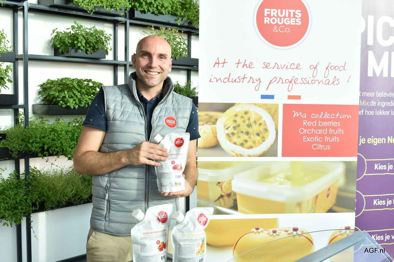 Vincent Verstijnen van het Franse bedrijf Fruits Rouges. Het Franse bedrijf teelt zelf fruit en heeft verwerkingslocaties in Marokko en Roemenië. Van Gelder is distributeur van de fruitpurees in Nederland