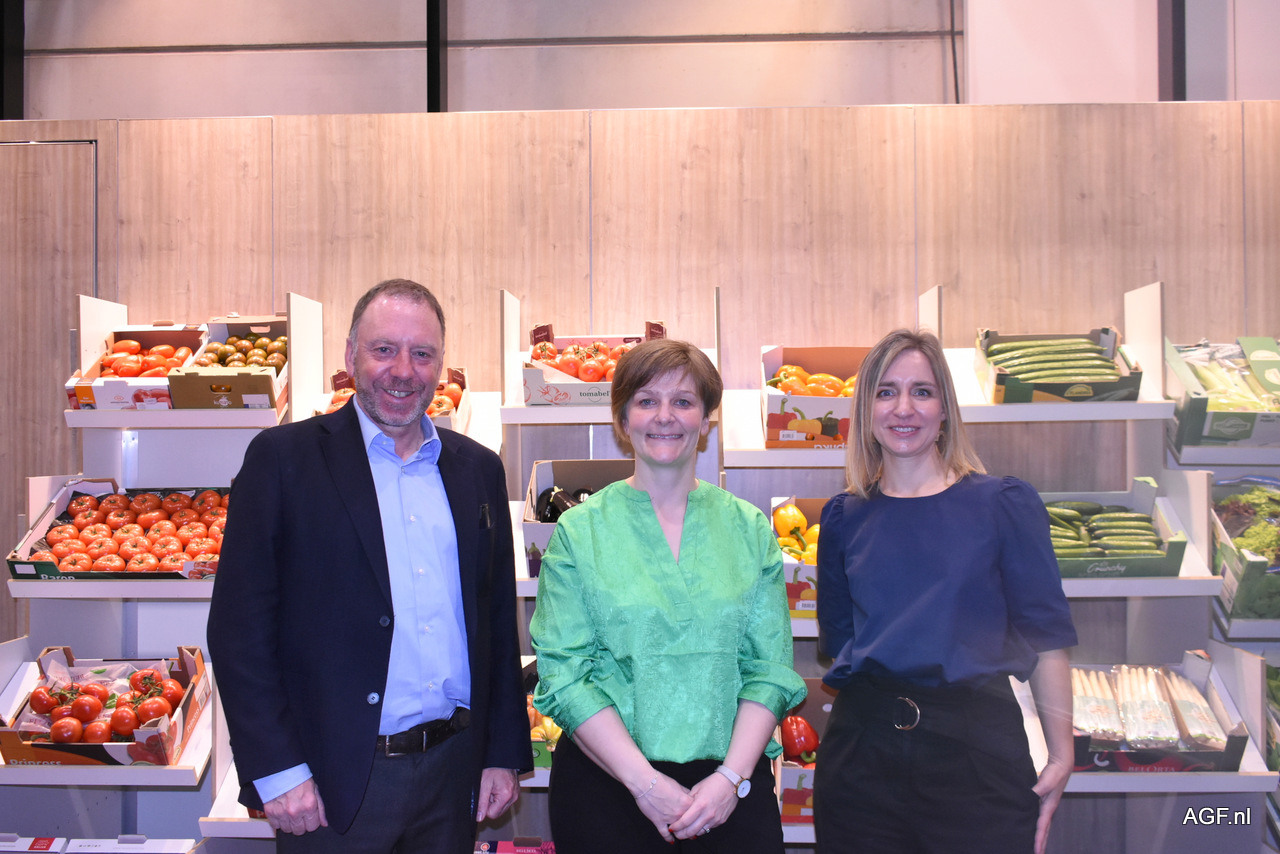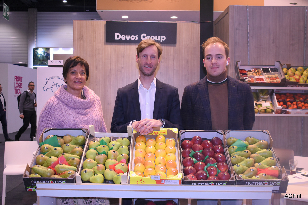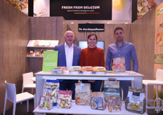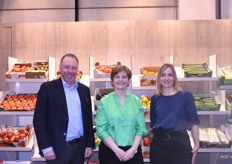 Filip Fontaine, Nele van Avermaet en Katrien De Nul van, initiator van het Belgische paviljoen, VLAM. Nele is niet bang voor een mindere aanloop tijdens de Fruit Logistica van dit jaar: “De kwaliteit van de contacten is belangrijker dan de kwantiteit.”
