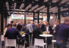 Naarmate de middag werd het op de eerste dag van de Fruit Logistica steeds drukker op het Belgische paviljoen. De bezoekers kwamen allen een kijkje nemen naar wat de Belgen te bieden hadden.