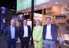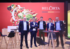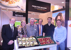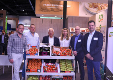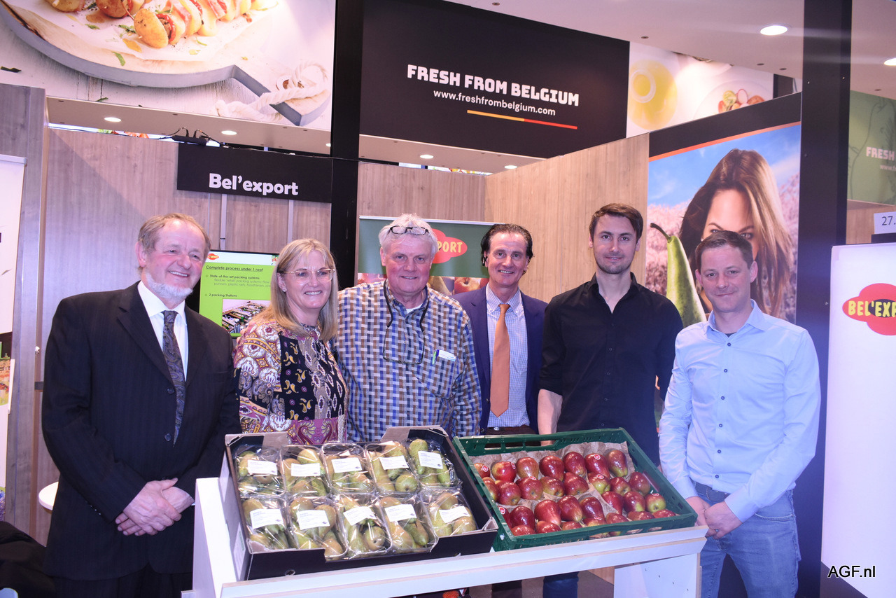 Op de stand van Bel’export waren ‘de mannen van Derwael’ te vinden. Tony, Dieter, Gaston, Kevin en Jos worden op de foto vergezeld door, de enige dame in het gezelschap, Corné Grundlingh van Topfruit.