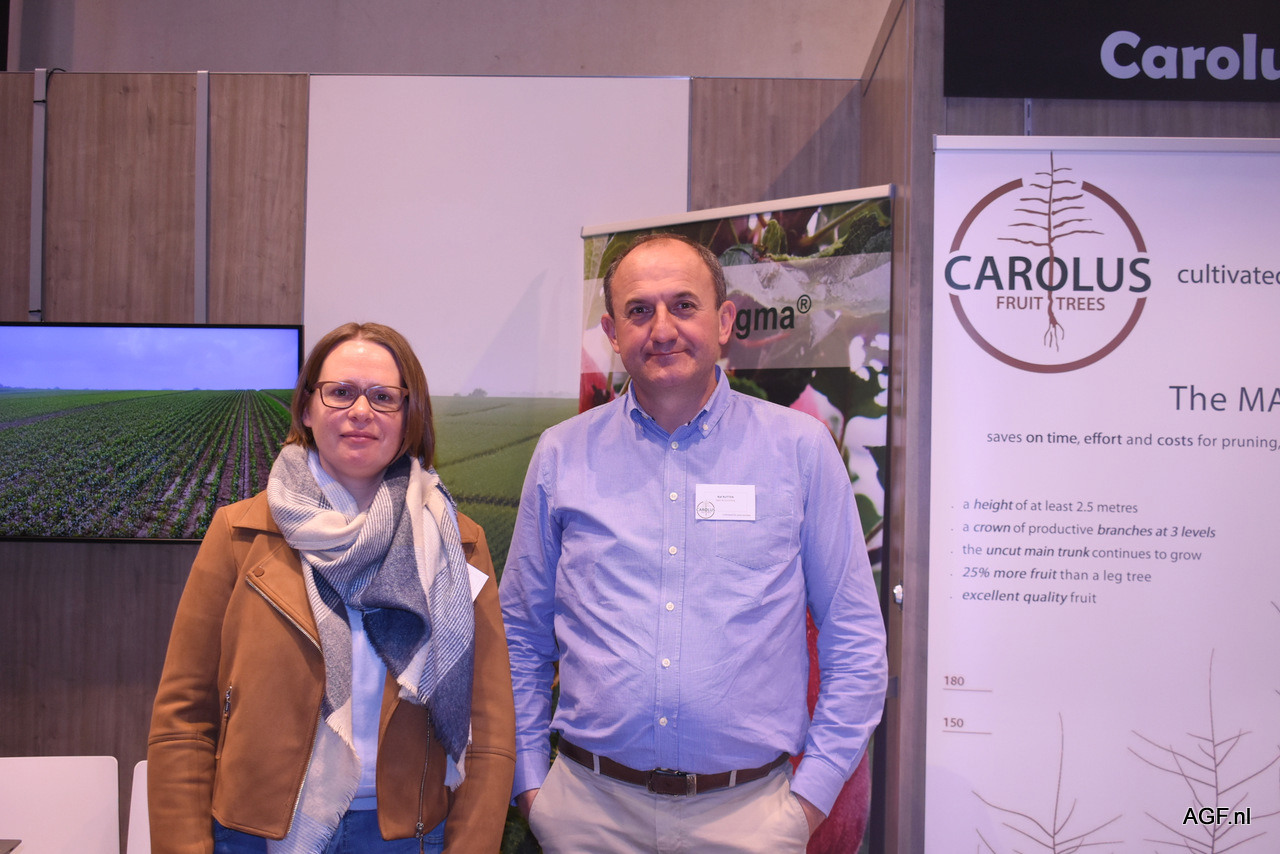 Kristien Esselen en Raf Rutten van fruitboomkwekerij Carolus Trees. Het bedrijf heeft een productie van ruim 2 miljoen appel- en perenbomen, die zij leveren aan fruitkwekers door heel Europa en Centraal-Azië. Tevens zitten zij in testfases in Zuid-Afrika en Chili.