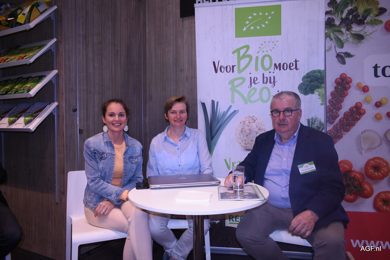 Wendy Lefevere, Martine Ingels en Philiep Willems van de REO veiling vertelden de relaties over onder andere het uitgebreide aantal bio-producten dat zij aanbiedt.