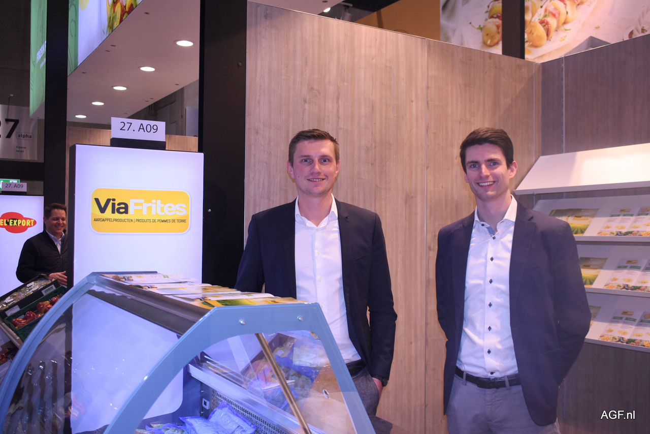 Het was de eerste keer op Fruit Logistica voor de mannen van ViaFrites. Stijn Viaene en Anne Hoeck genoten van de atmosfeer en gaven aan dat ze blij waren met de manier waarop VLAM het had geregeld voor de Vlaamse deelnemers.