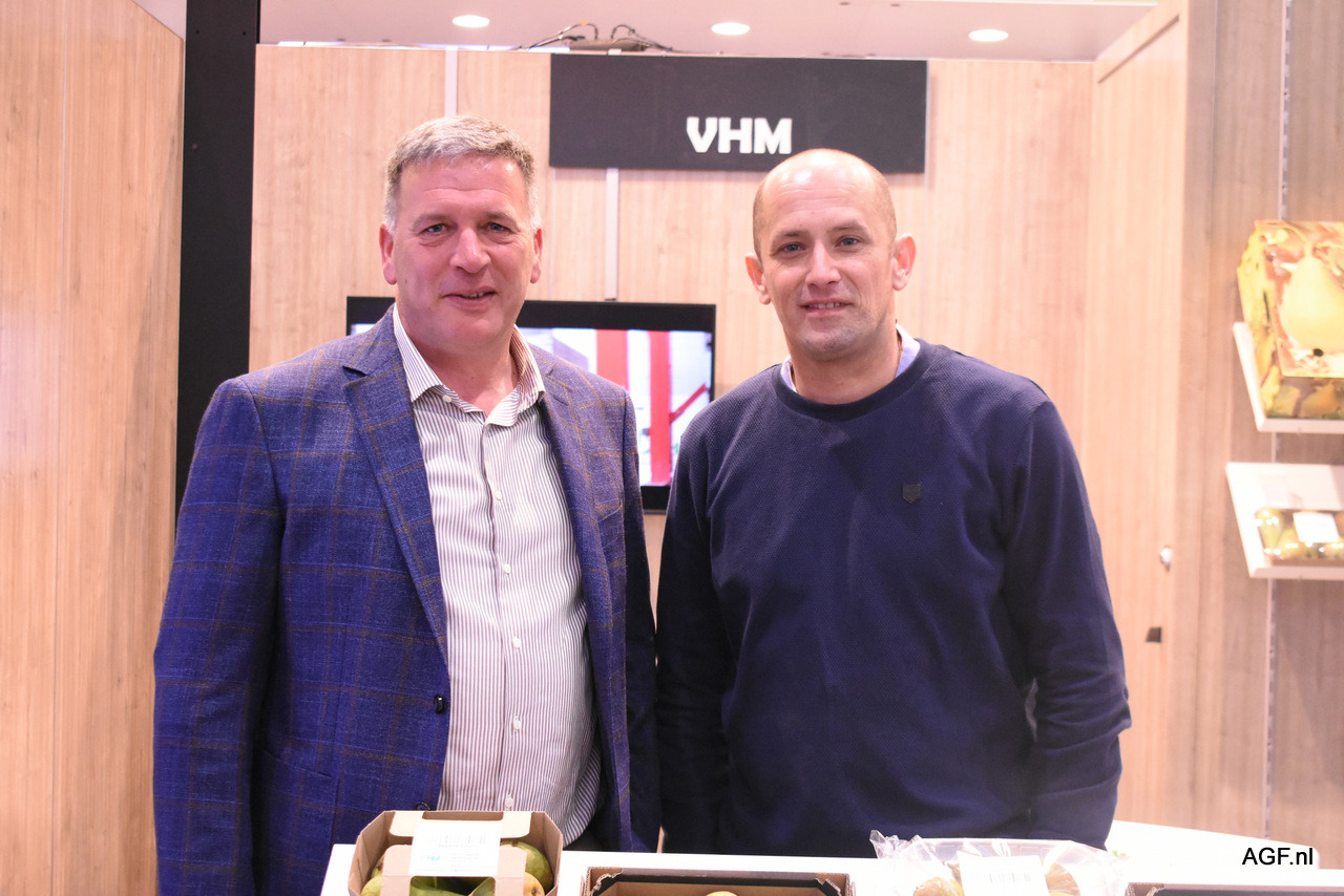 Christophe van Haelst en Fransesc Salata Costa van VHM Fruittrade hebben nog wat slapeloze nachten achter de rug van de schade van de vorst voor hun conference peren. Toch stonden beide mannen het geïnteresseerde publiek uitgebreid te woord.