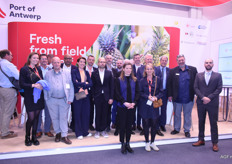 Een groepsfoto van de bedrijven op de gezamenlijke stand van de Port of Antwerp